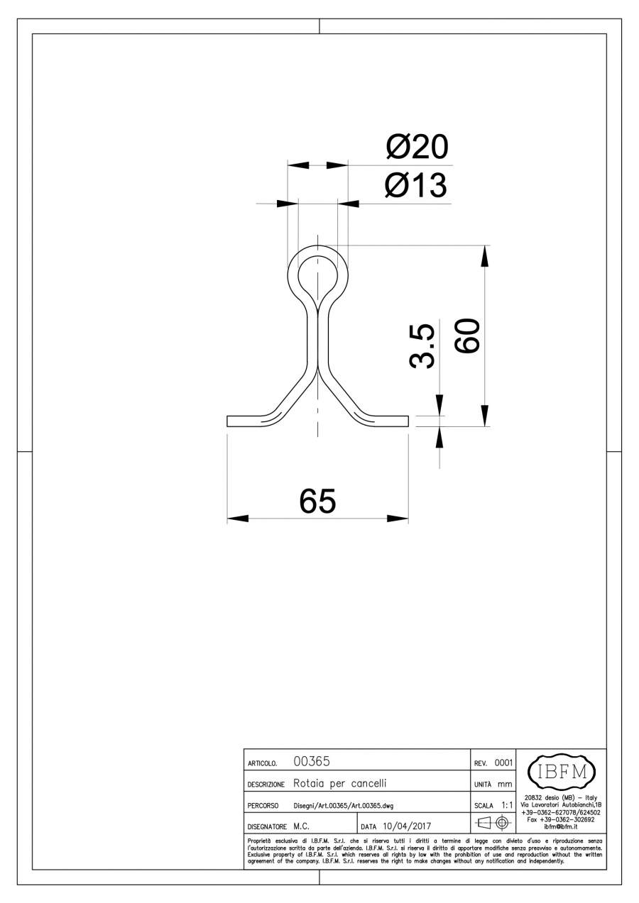 Track for cementing to suit 20mm round. Zinc plated steel.