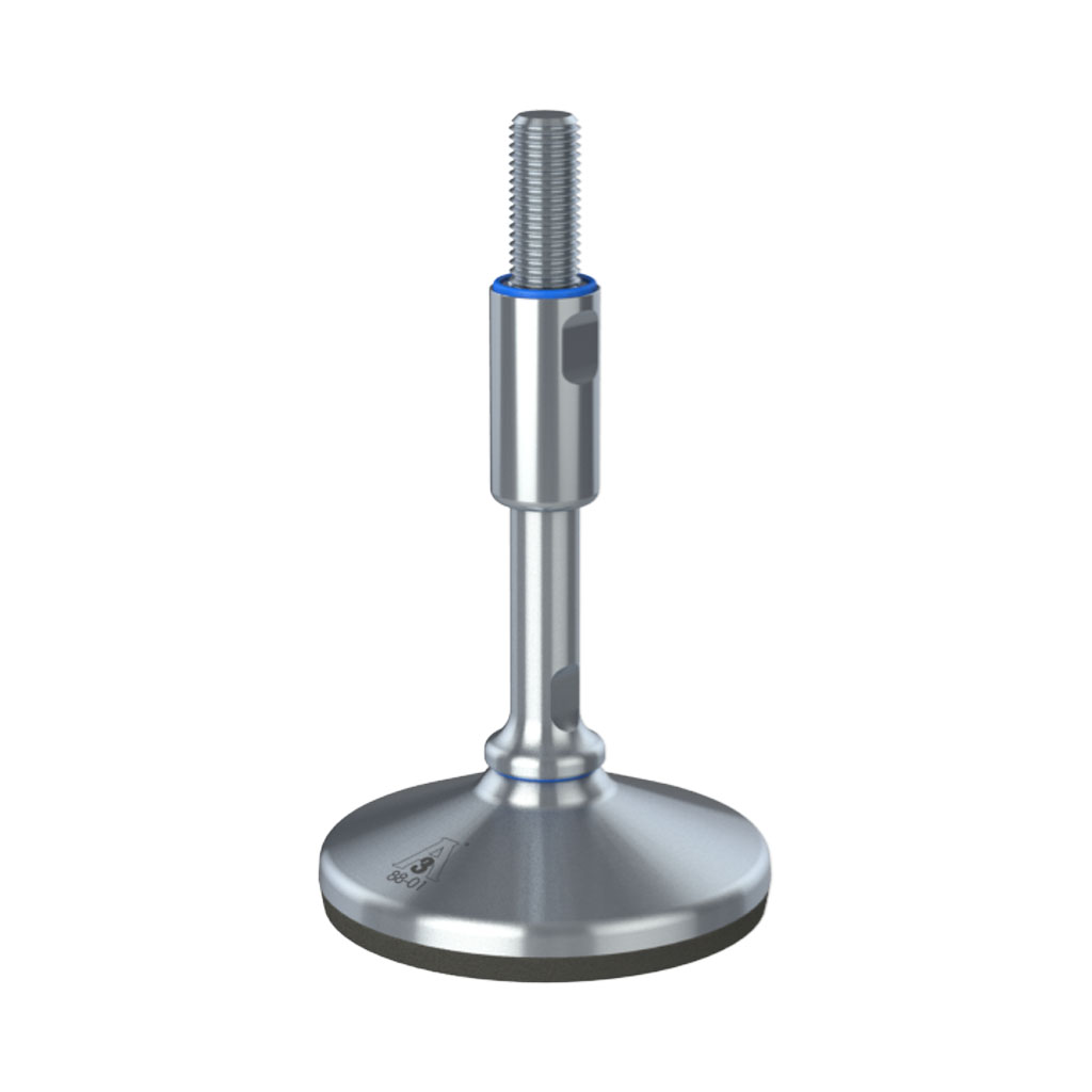 M16x150 Stainless steel certified hygienic levelling foot 105mm stainless base and anti-vibration rubber pad