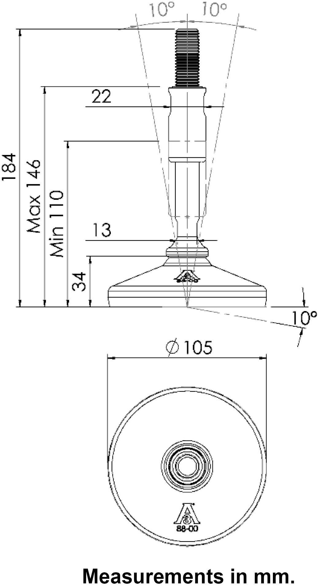 - Thread is covered with a hygienic sleeve functioning as counter nut.