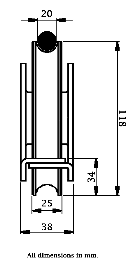 - 2-hole support bracket and round groove wheel made of zinc plated steel.