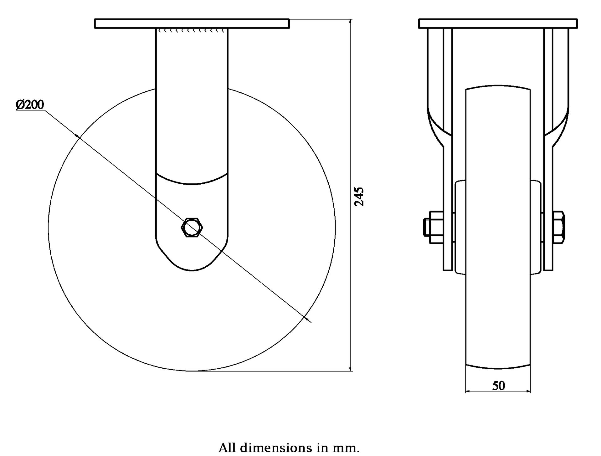 Wheel Diameter: 200mm (8" inches)