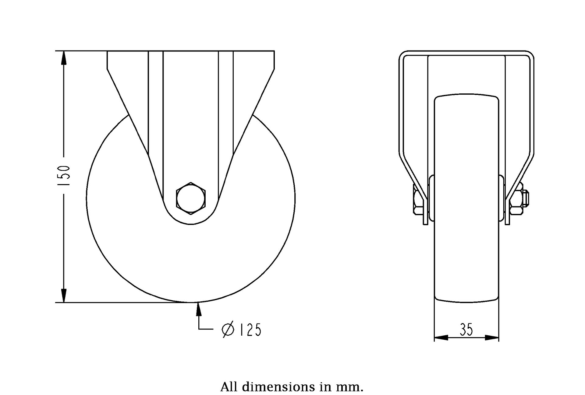 Fixed castor with top plate bracket made of stainless steel (material no. 1.4301/AISI 304).
