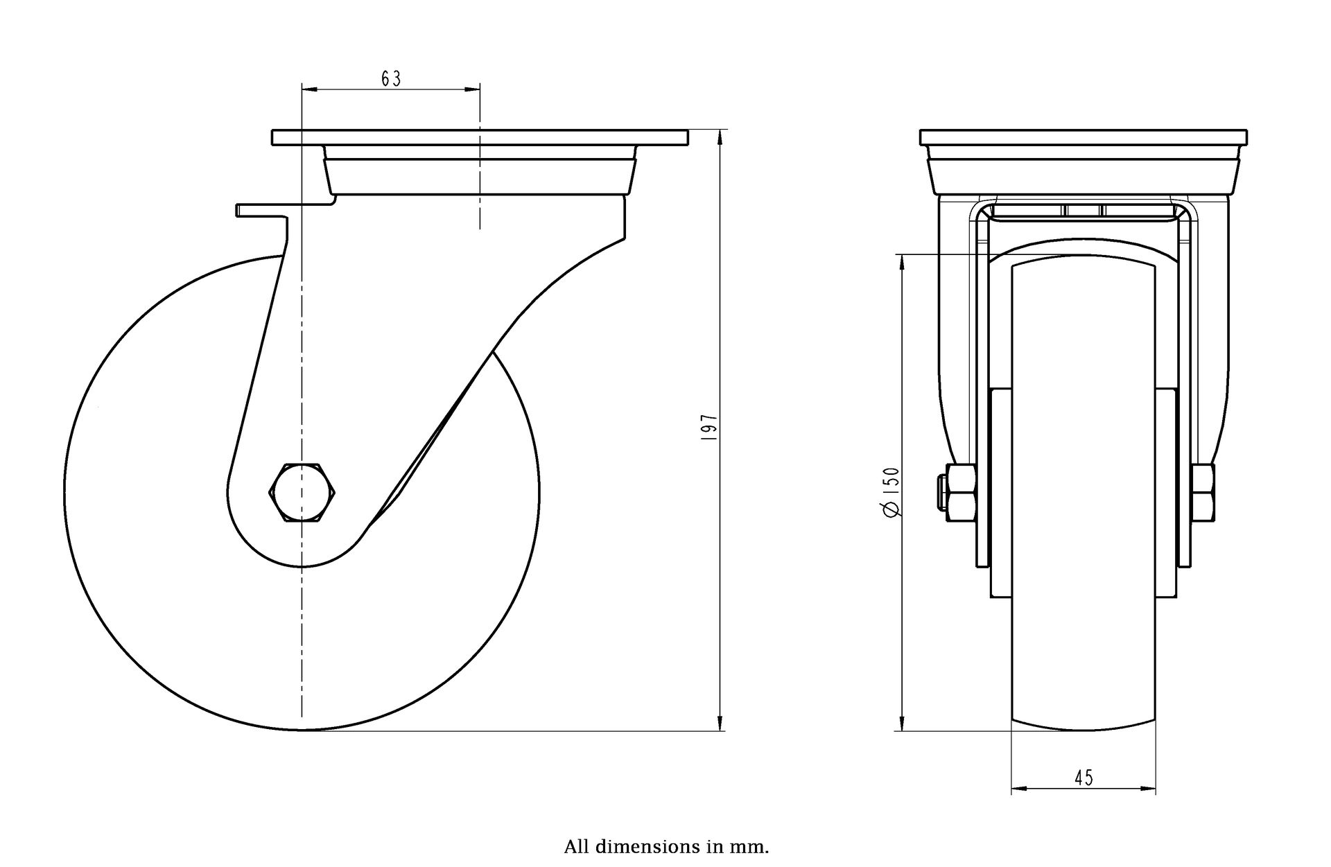 Swivel castor with strong top plate bracket made of stainless steel with double row ball race in swivel head (material no. 1.4301/AISI 304), with dust protection ring.