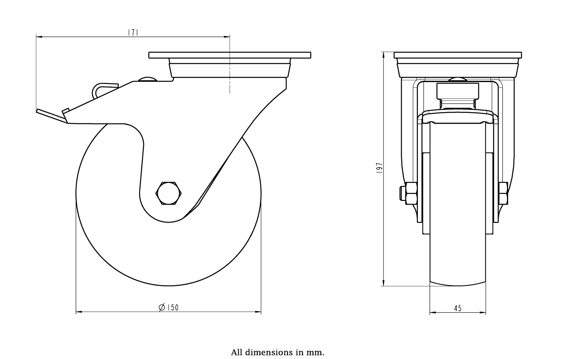 Wheel Diameter: 150mm (6" inches)