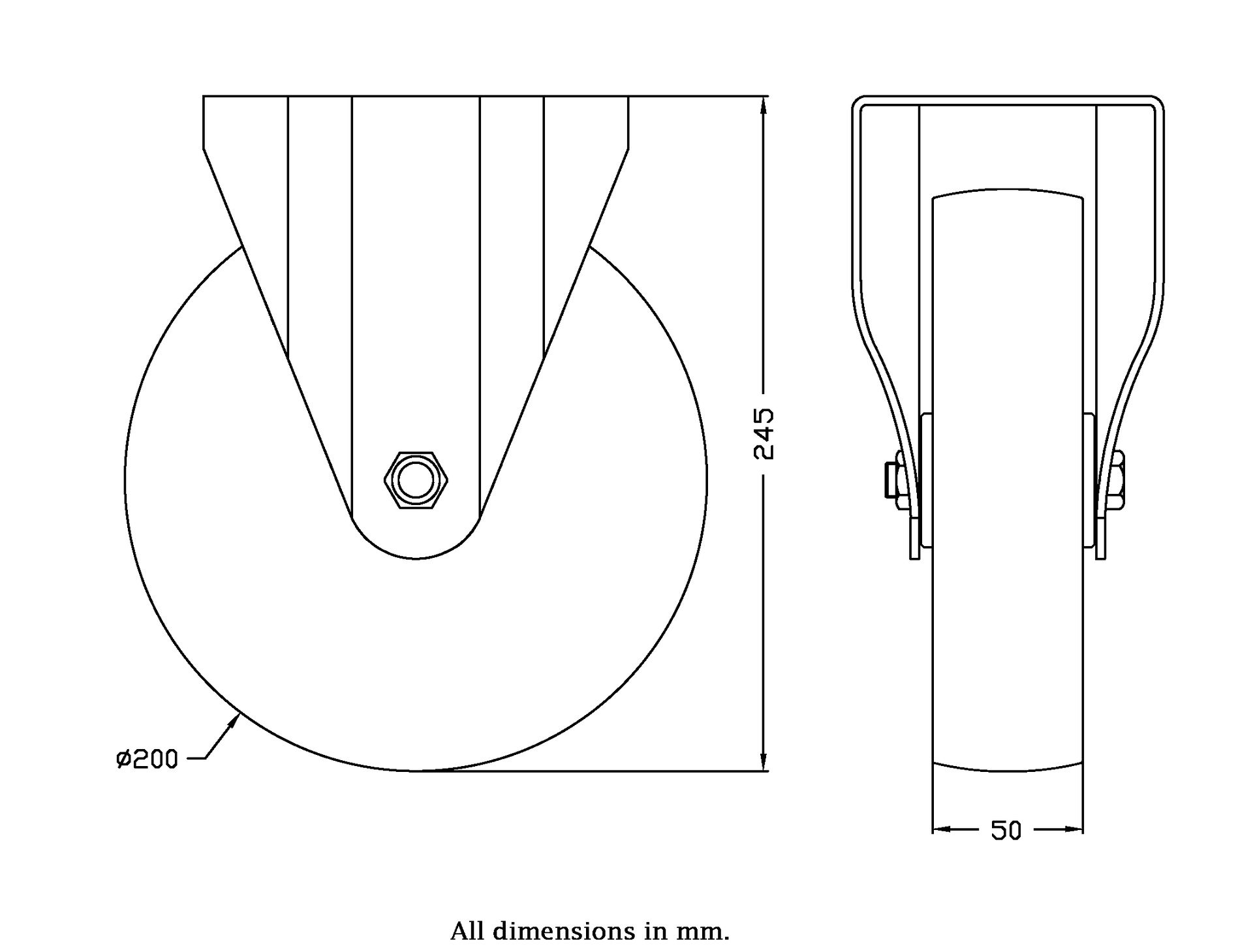 Wheel Diameter: 200mm (8" inches)