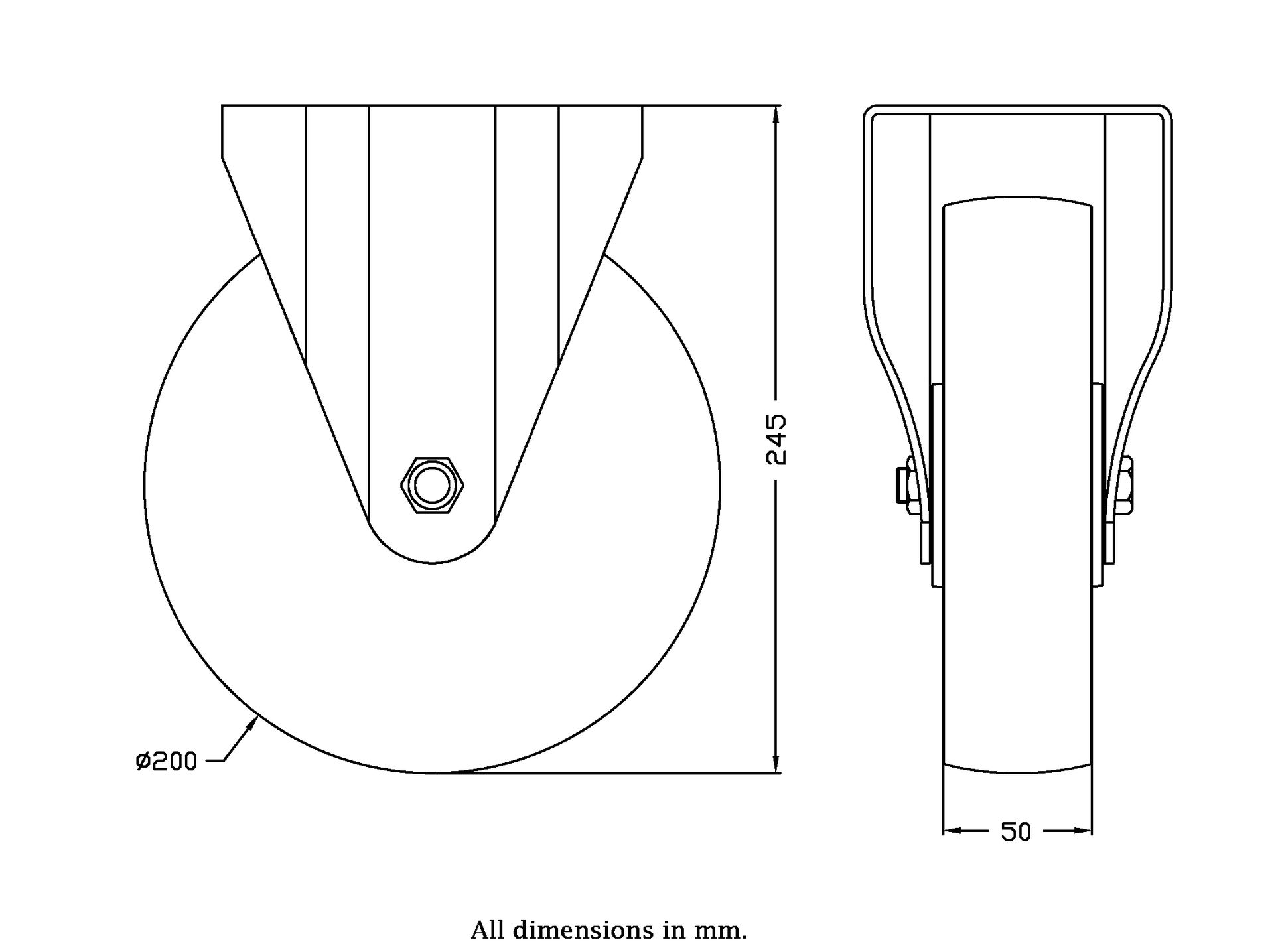 Wheel Diameter: 200mm (8" inches)
