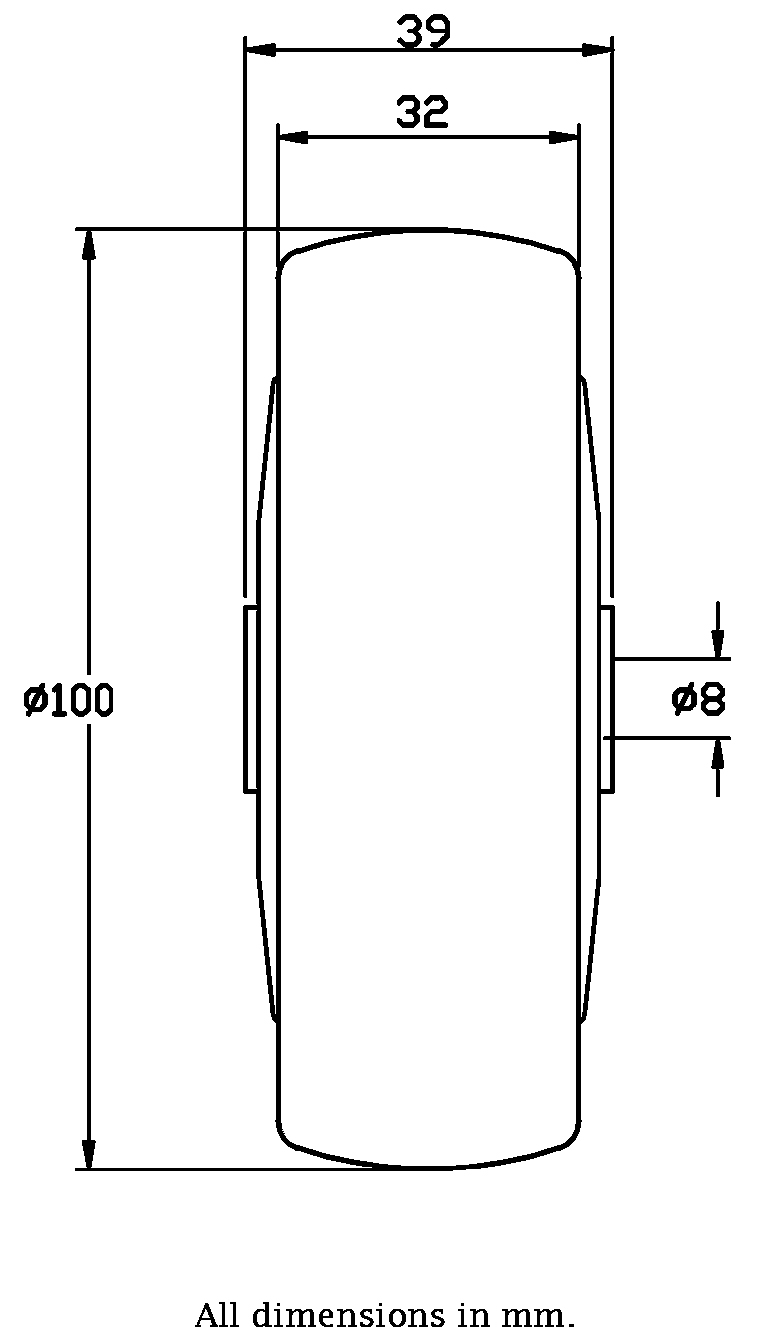 100mm wheel with grey thermoplastic rubber on polypropylene centre
