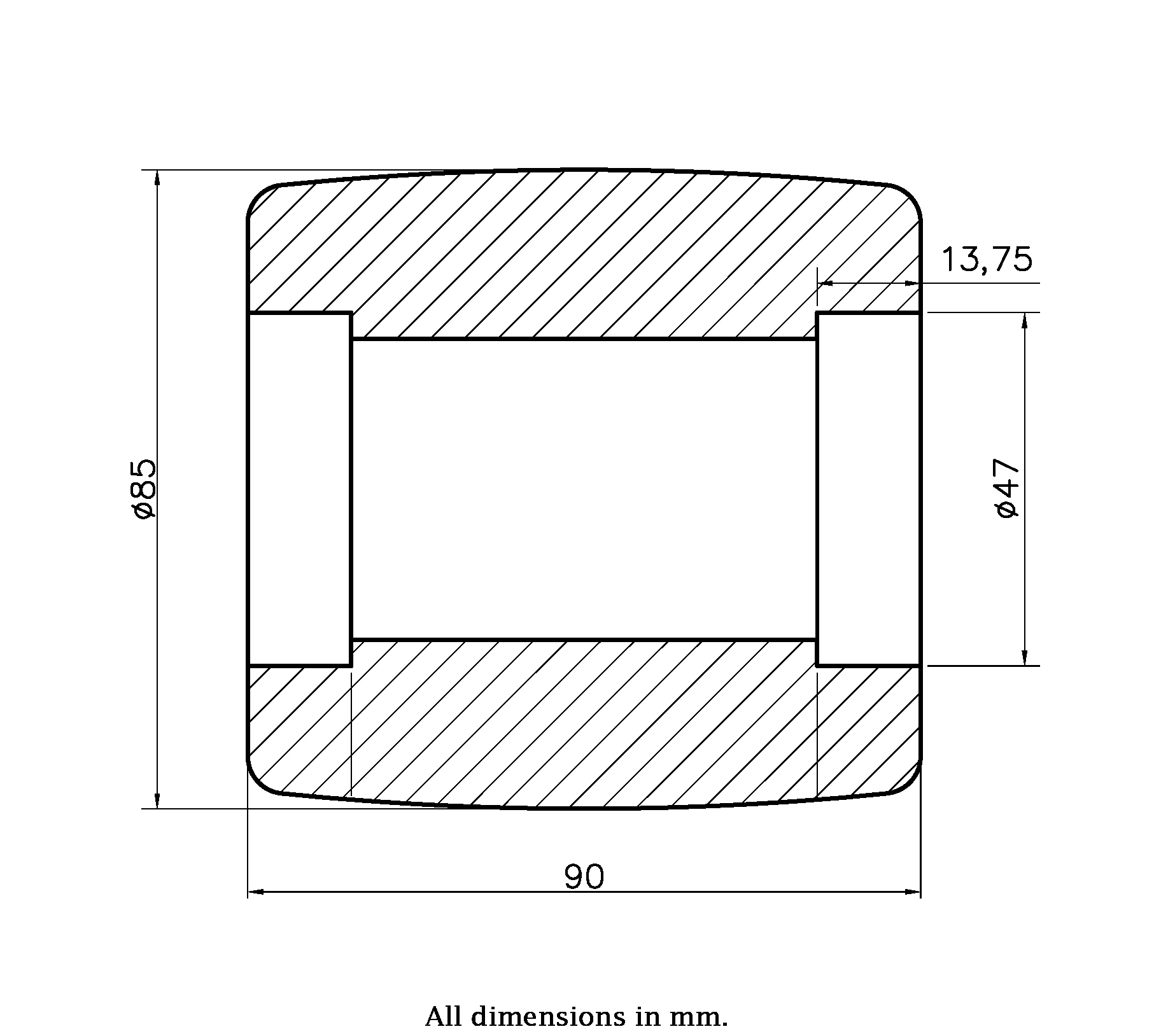 Delivered without ball bearings (bearing seats 47x13.75mm).