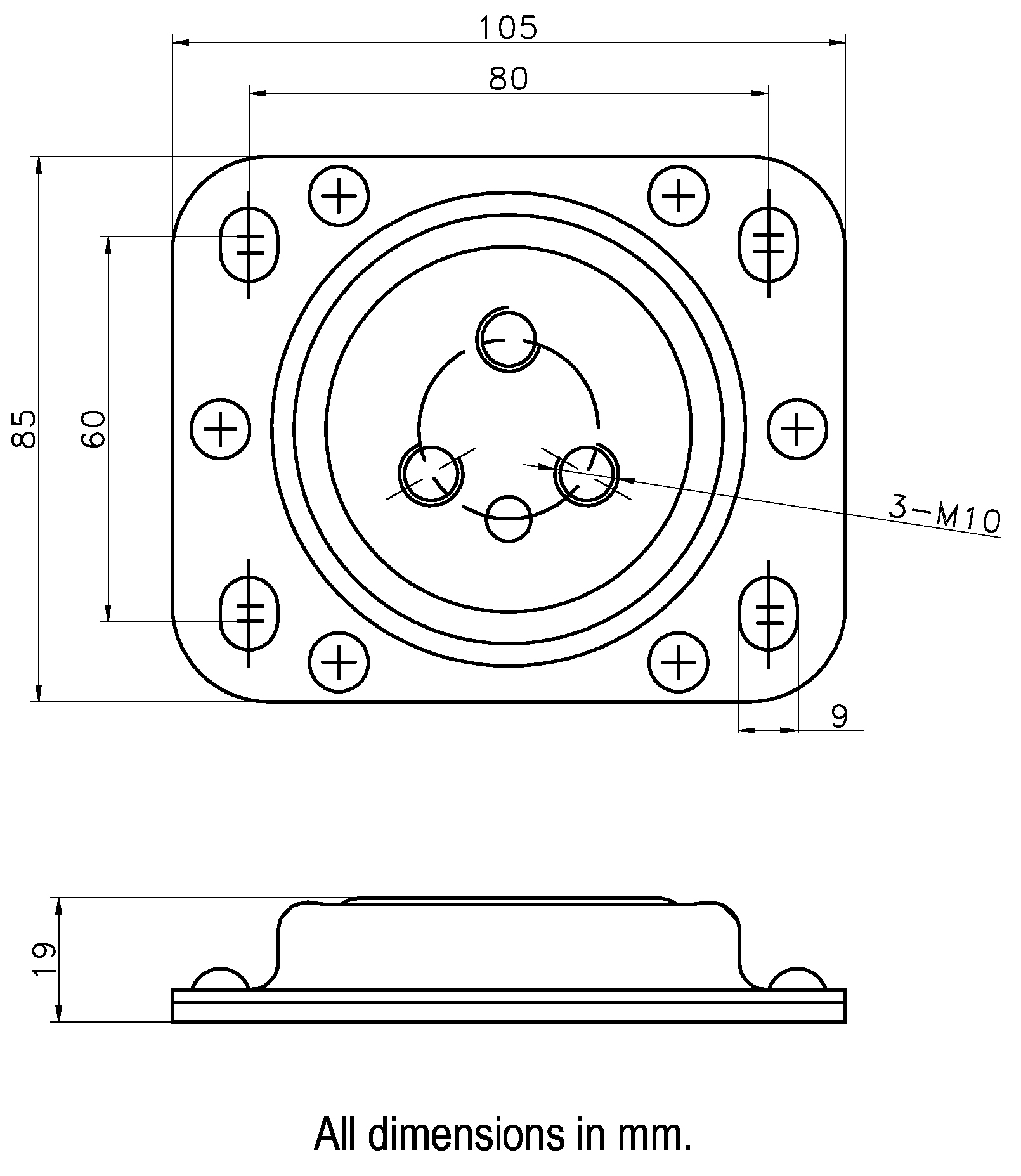 Top Plate Size: 105x85mm