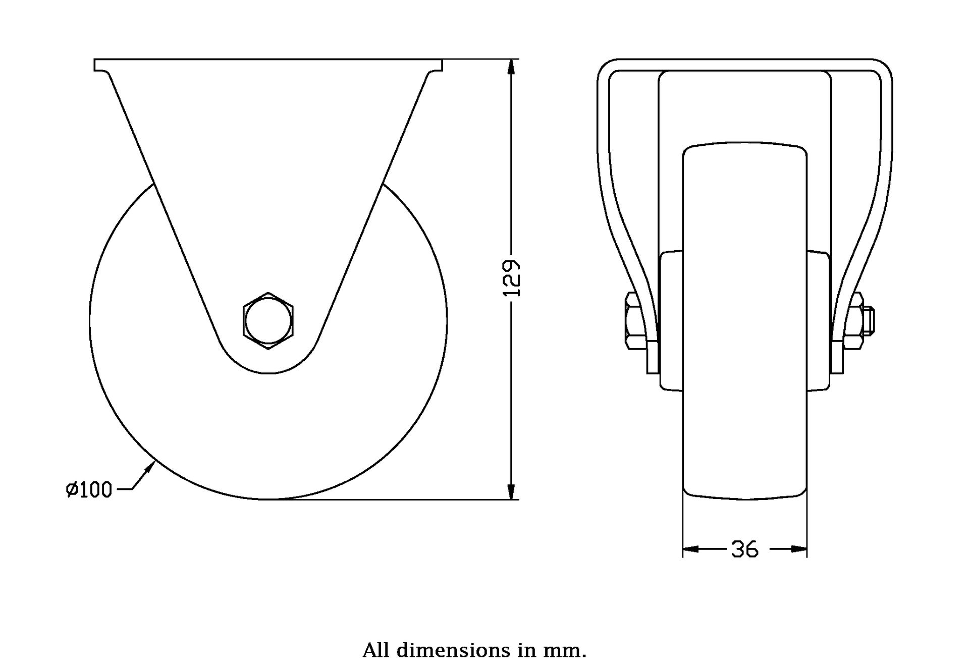 100mm fixed castor with grey thermoplastic polyurethane on nylon centre wheel