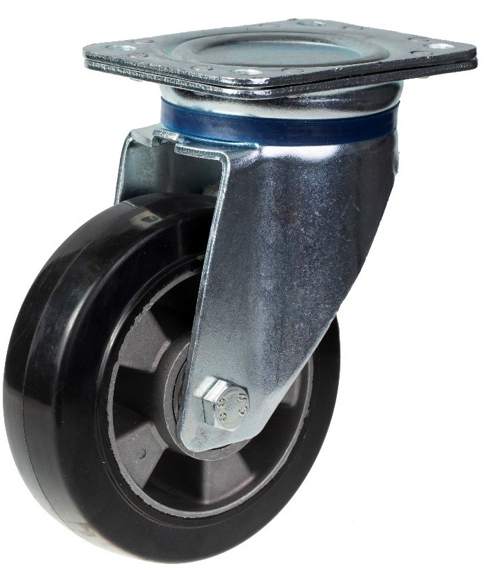 152mm swivel castor with black elastic rubber on aluminium centre wheel