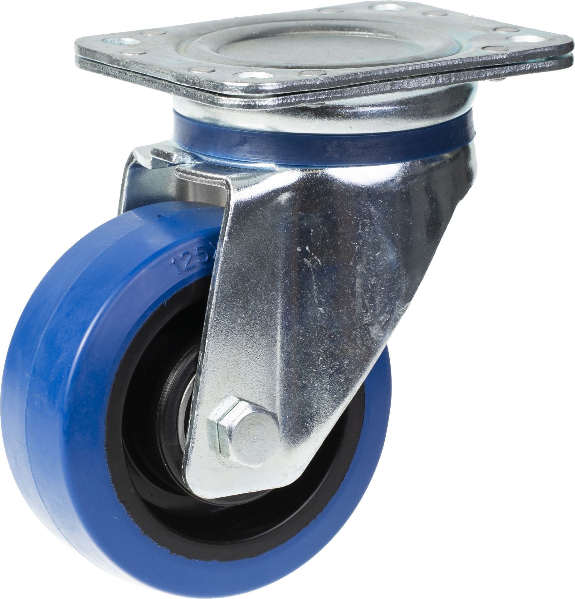 125mm swivel castor with blue elastic rubber on nylon centre wheel