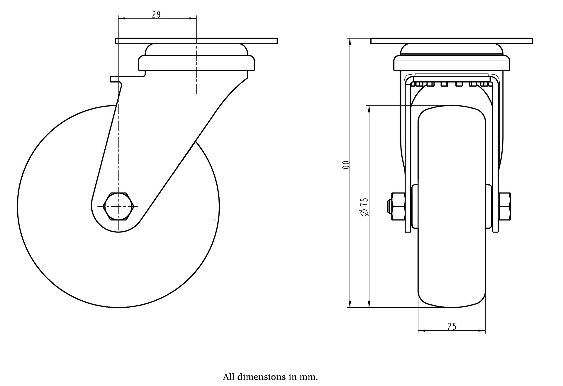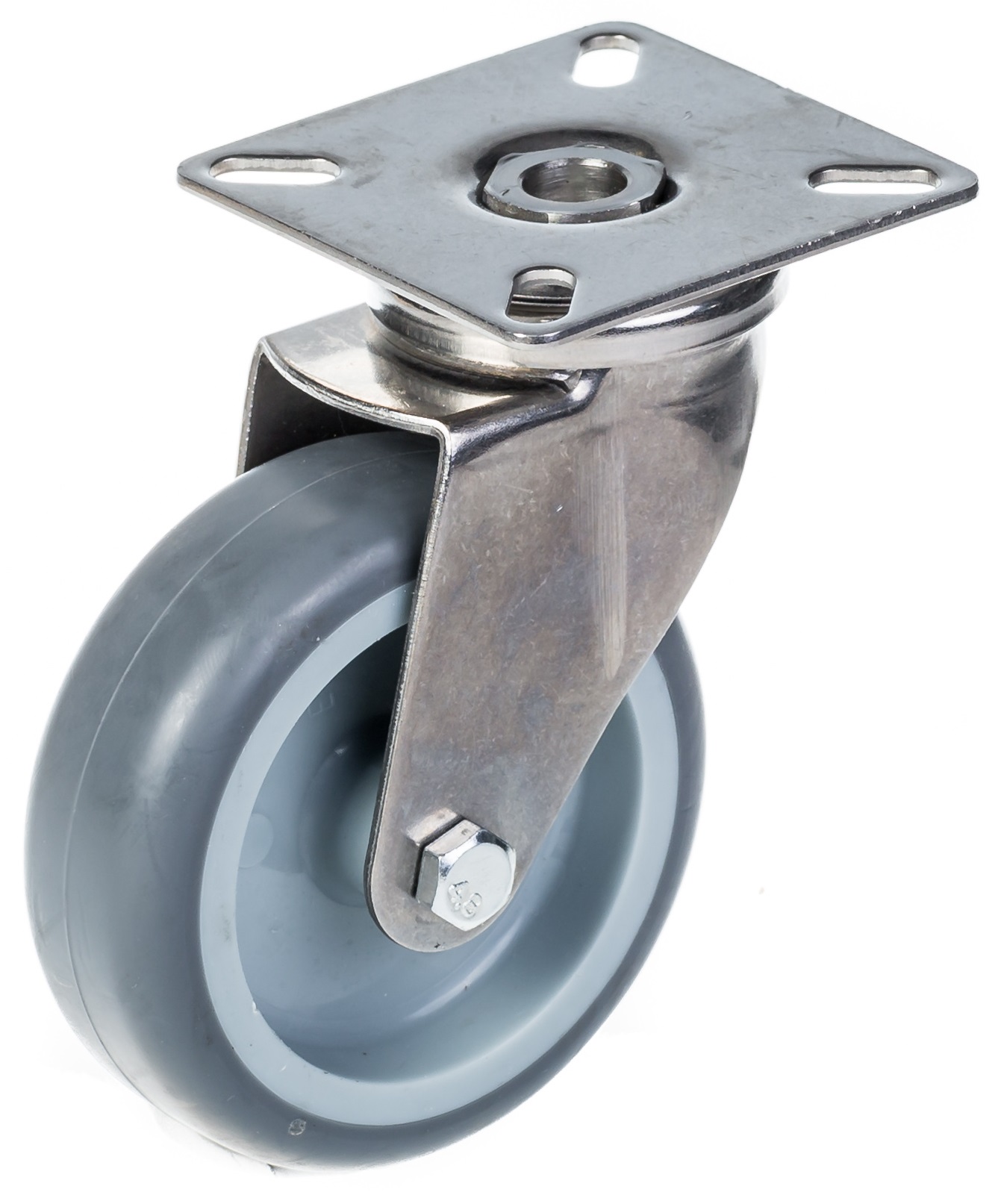 75mm stainless steel swivel castor with grey thermoplastic rubber on polypropylene centre wheel