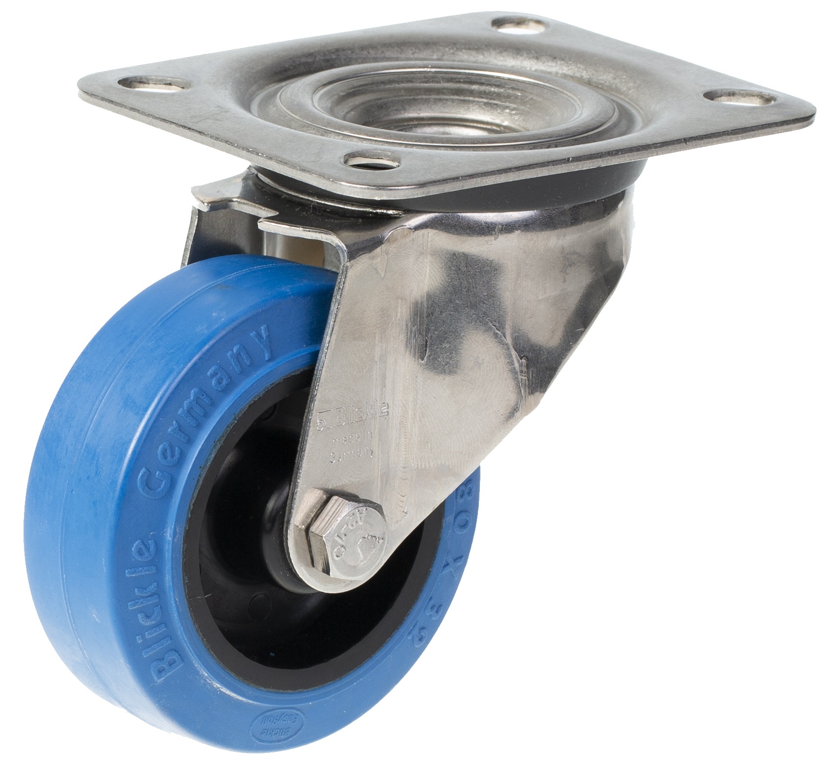 80mm stainless steel swivel castor with blue elastic rubber on nylon centre wheel