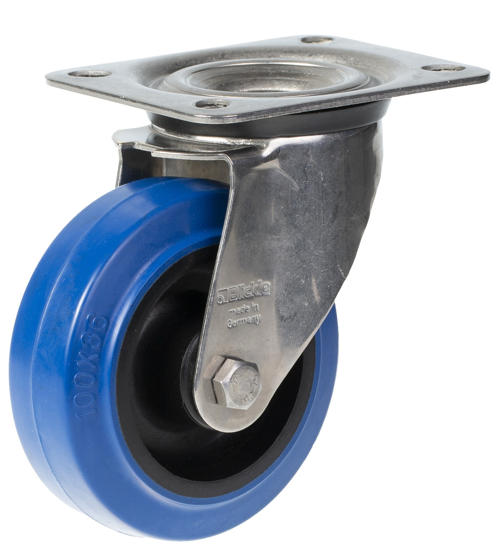 100mm stainless steel swivel castor with blue elastic rubber on nylon centre wheel