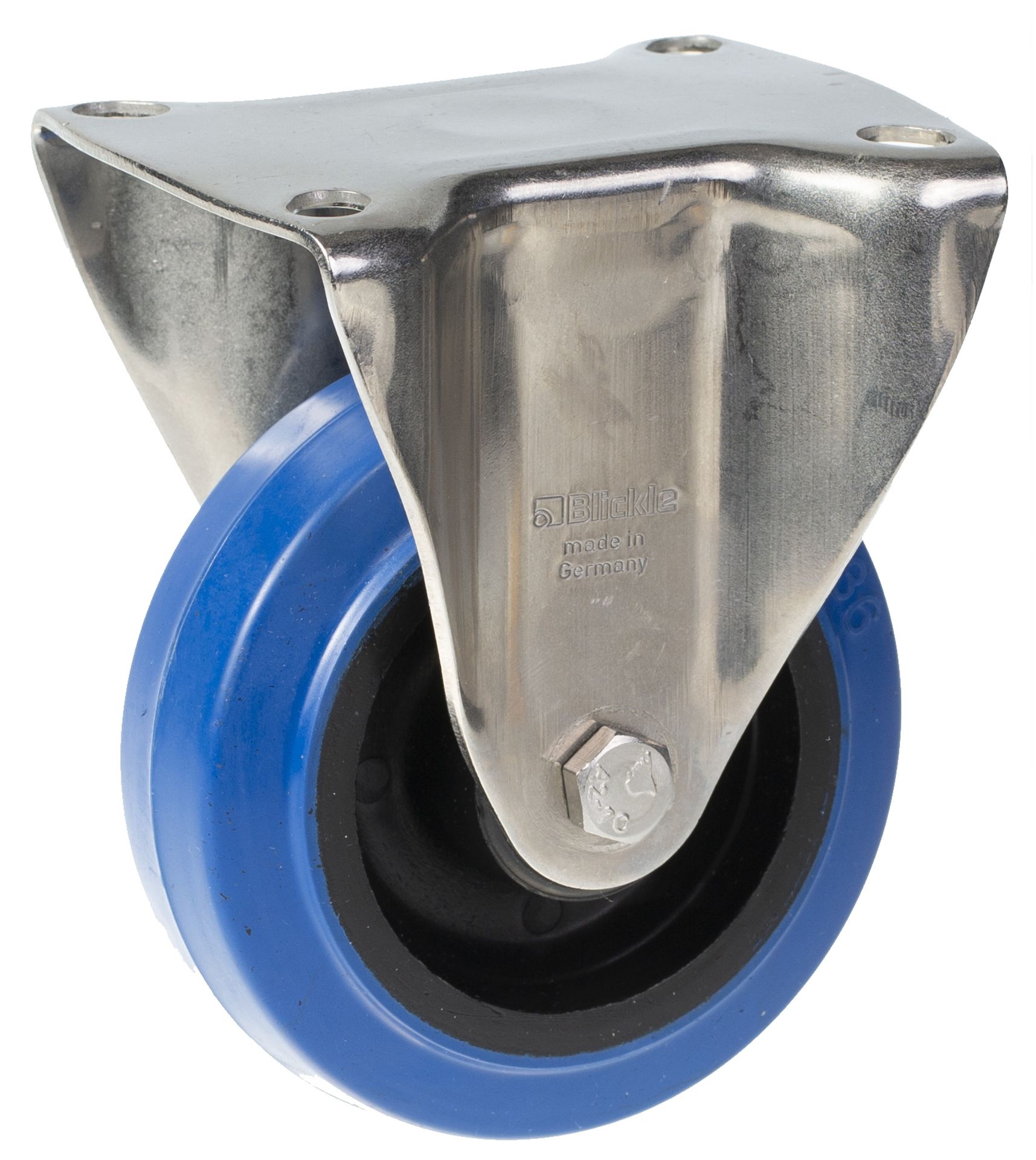 100mm stainless steel fixed castor with blue elastic rubber on nylon centre wheel
