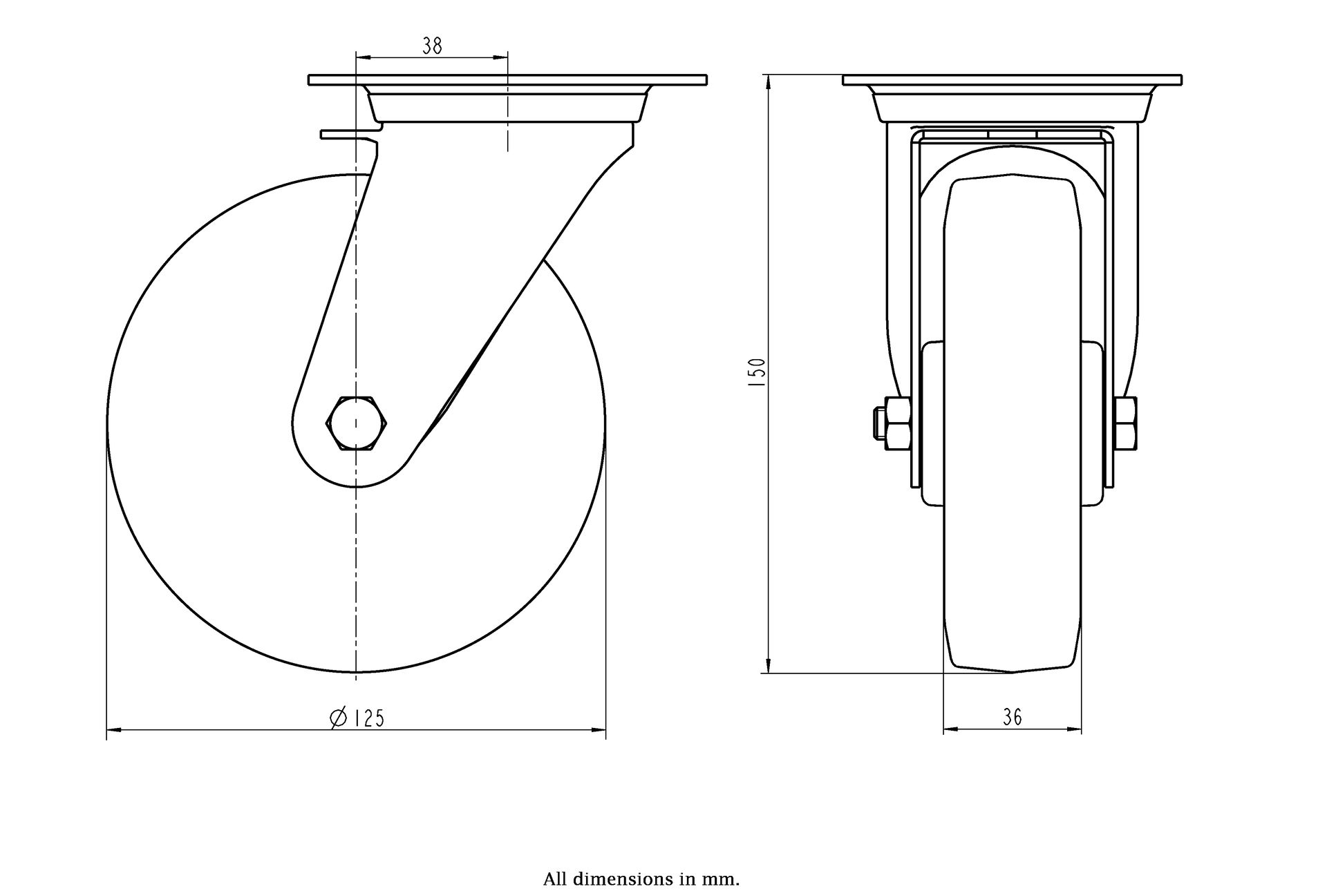 125mm stainless steel swivel castor with blue elastic rubber on nylon centre wheel