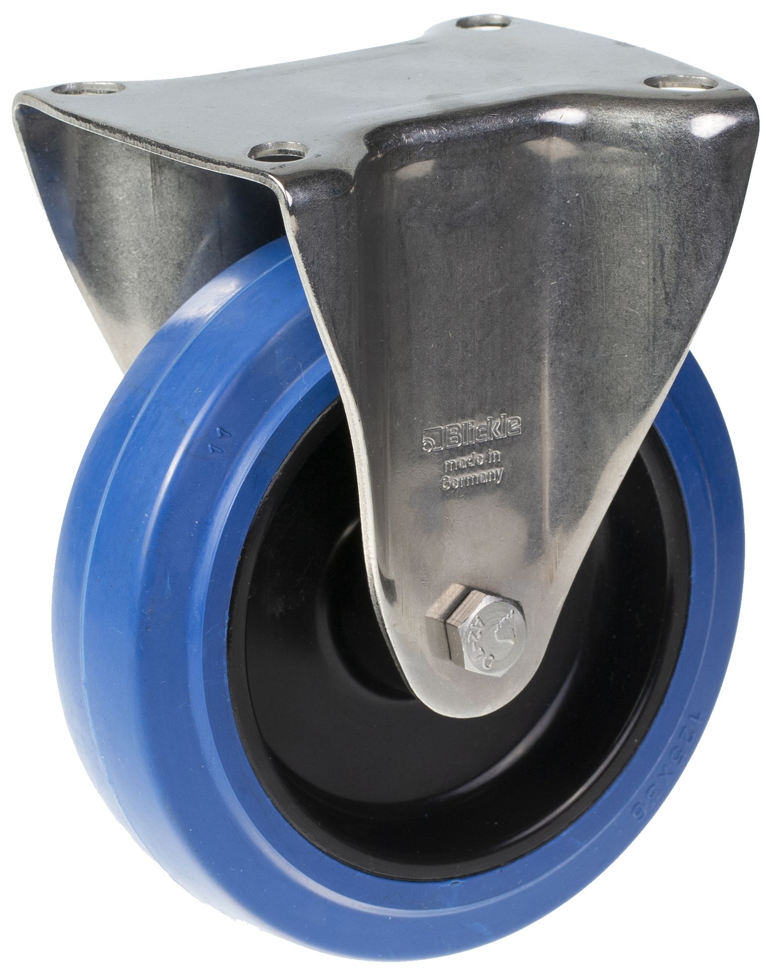 125mm stainless steel fixed castor with blue elastic rubber on nylon centre wheel