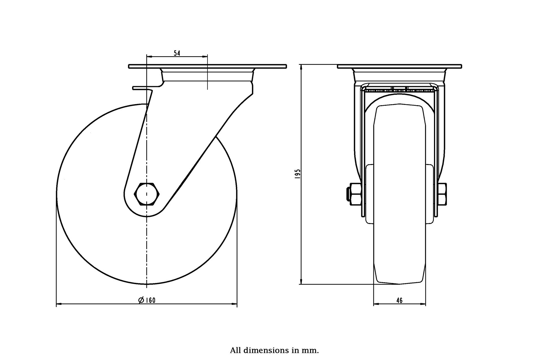 Wheel Diameter: 160mm (6" inches)