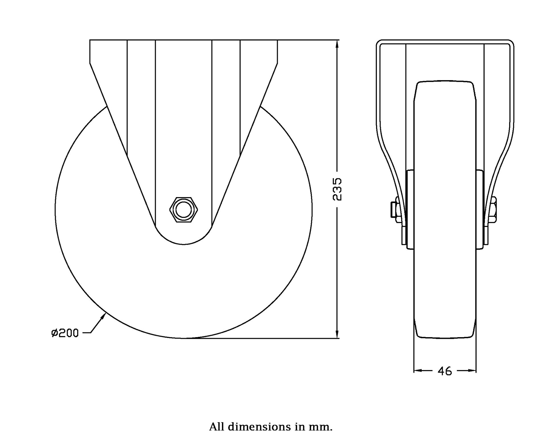 200mm stainless steel fixed castor with blue elastic rubber on nylon centre wheel