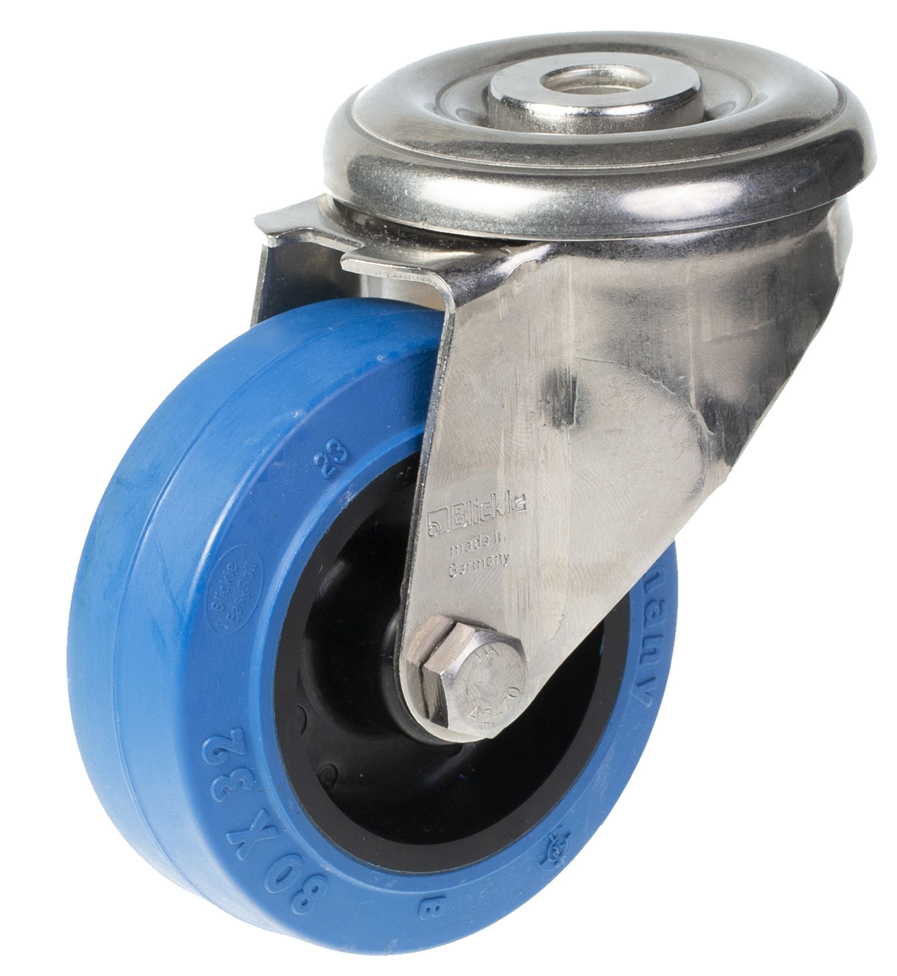 80mm stainless steel swivel castor with blue elastic rubber on nylon centre wheel