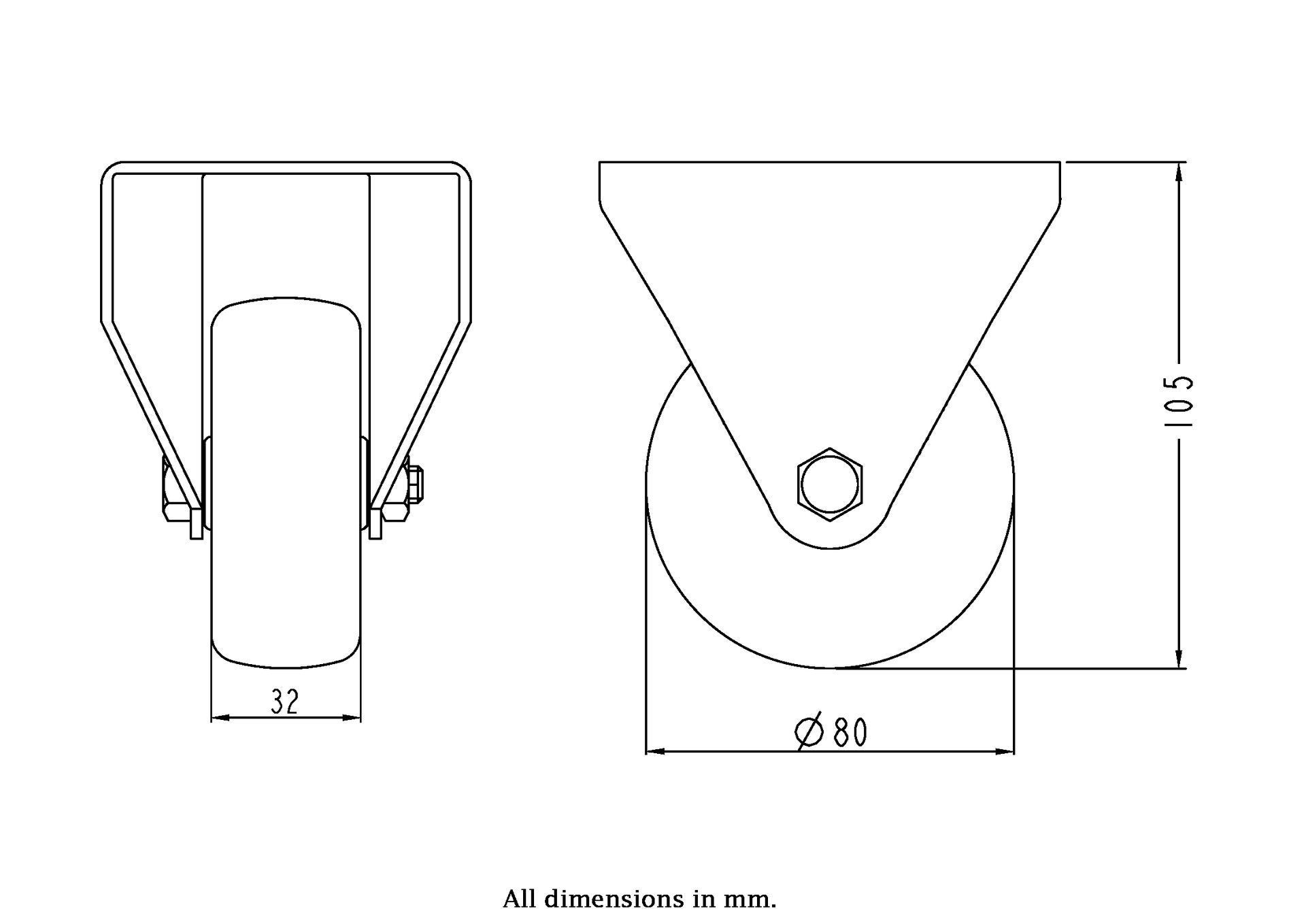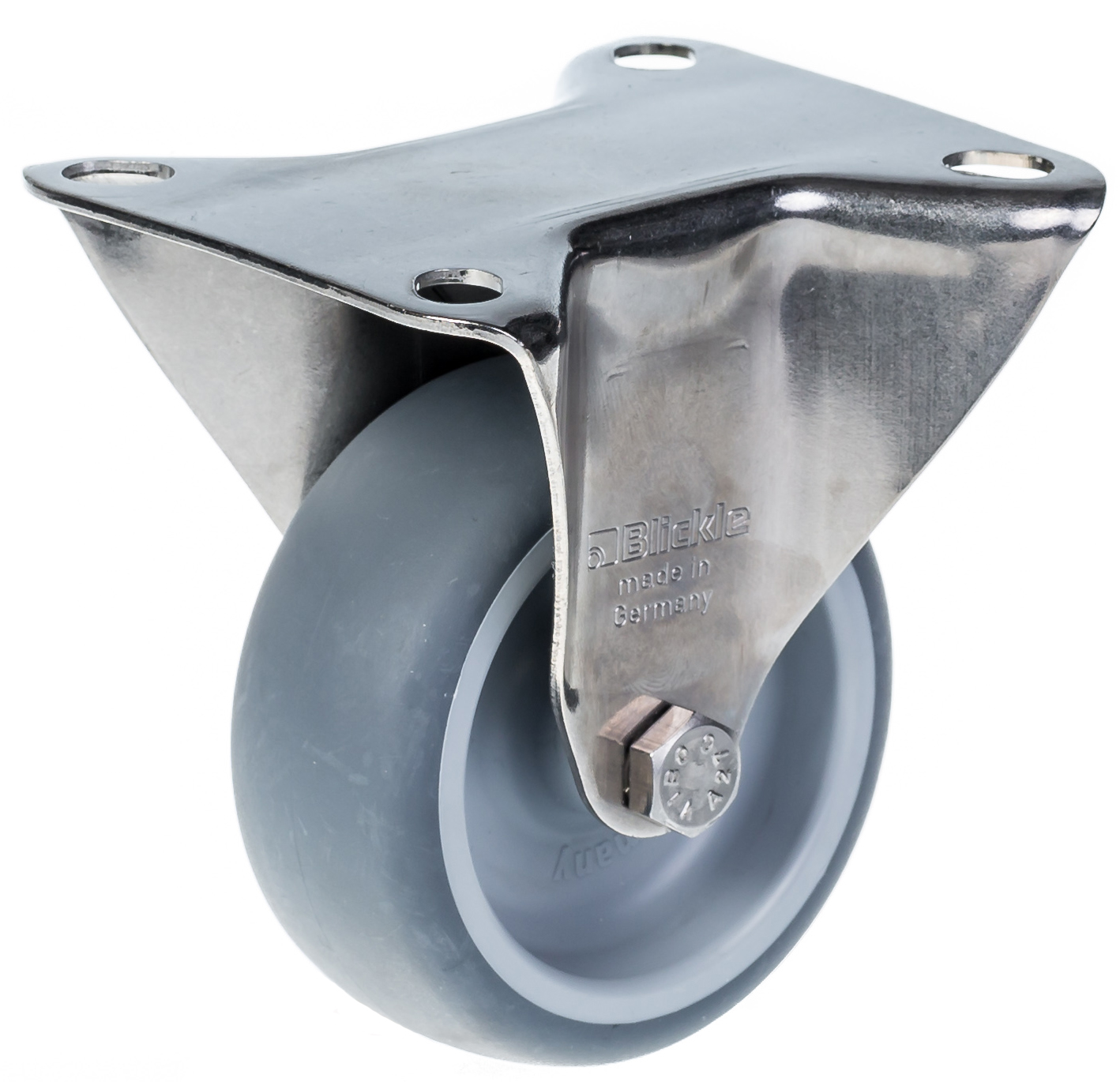 80mm stainless steel fixed castor with grey thermoplastic rubber on polypropylene centre wheel