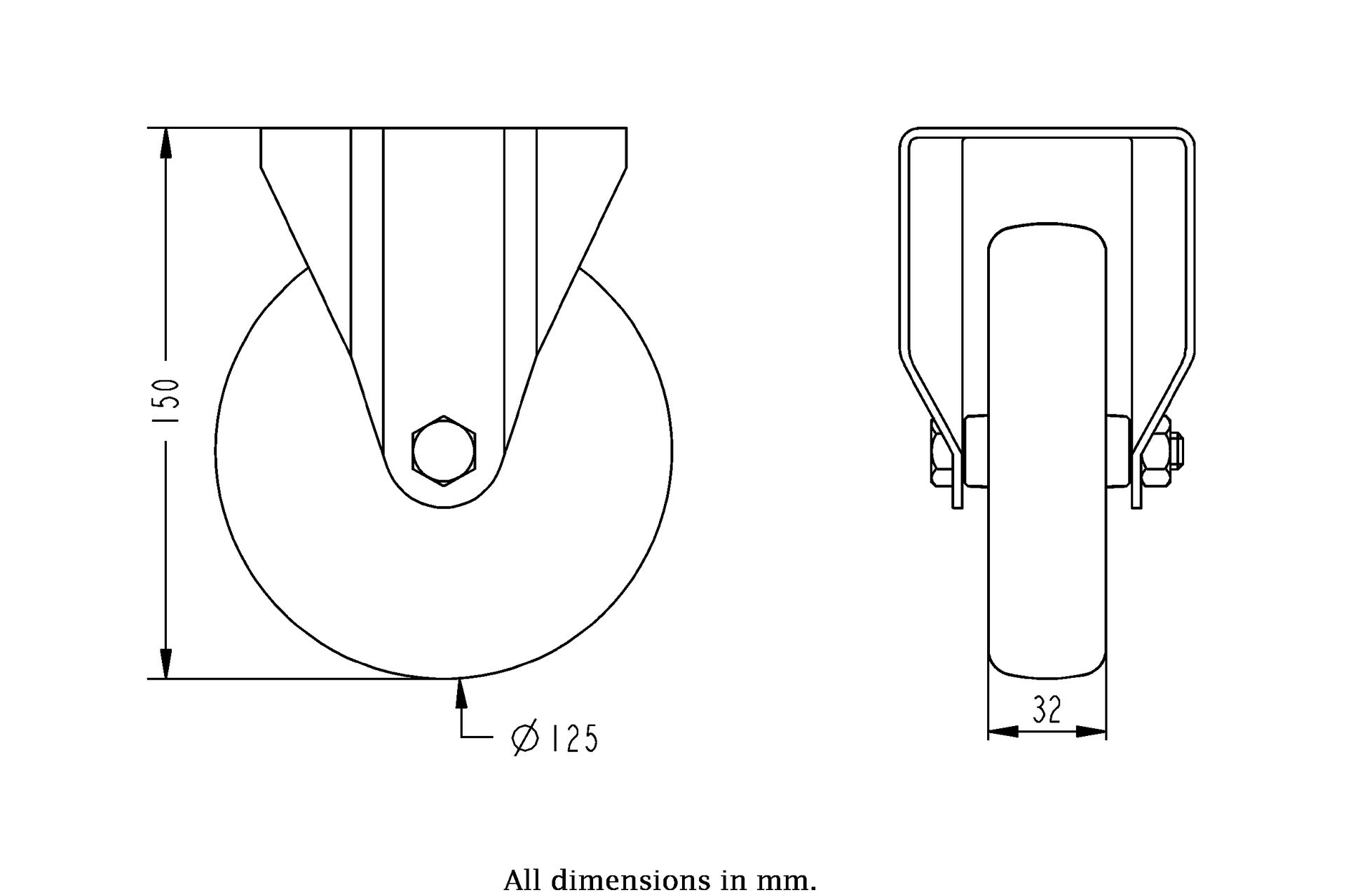 125mm stainless steel fixed castor with grey thermoplastic rubber on polypropylene centre wheel