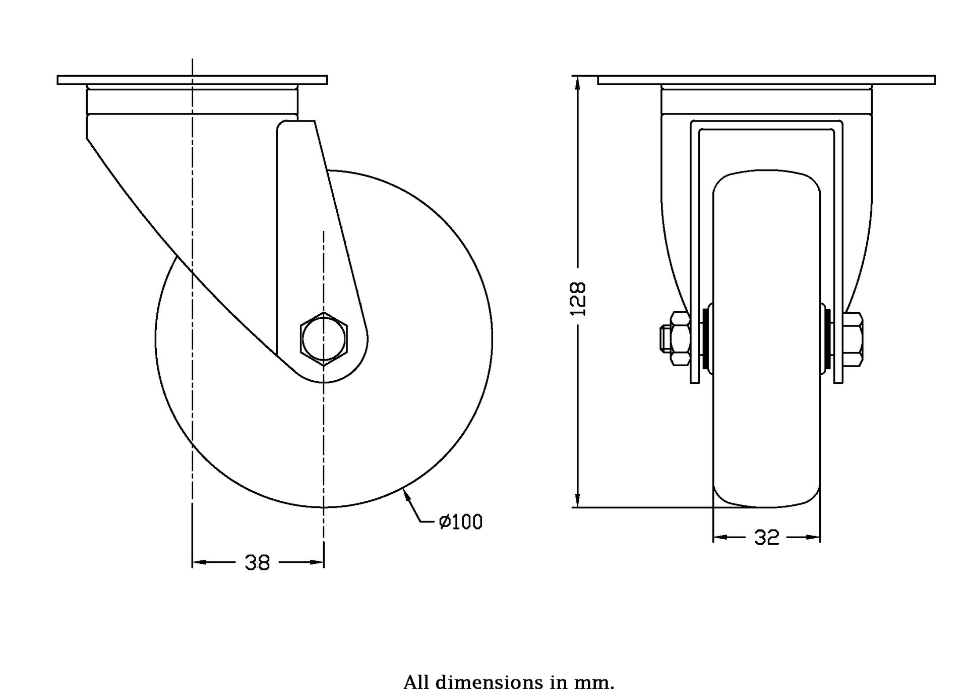 100mm swivel castor with grey electrically conductive thermoplastic rubber on polypropylene centre wheel