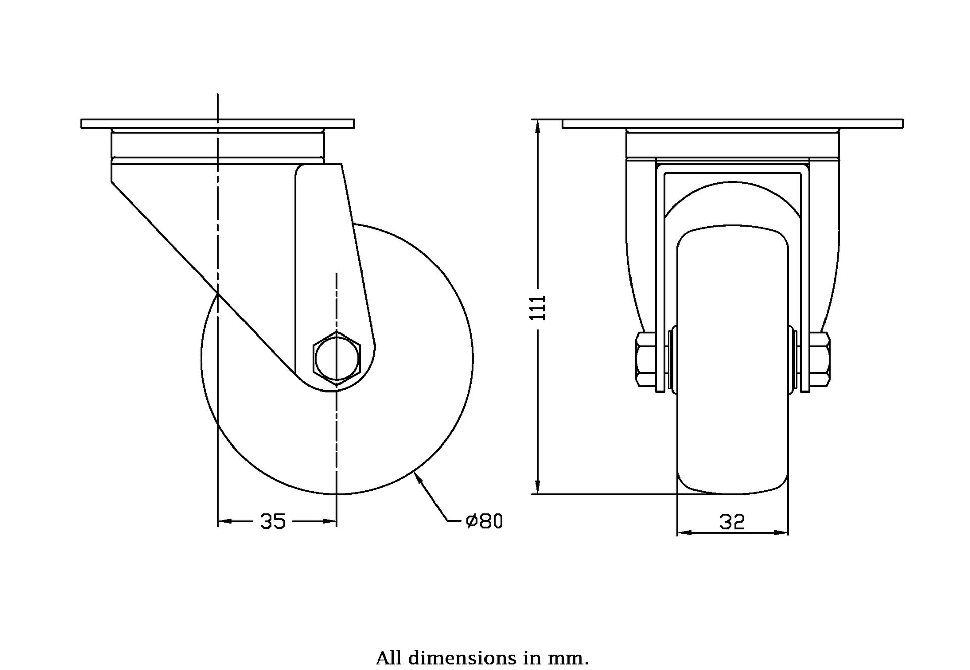 80mm swivel castor with grey electrically conductive thermoplastic rubber on polypropylene centre wheel