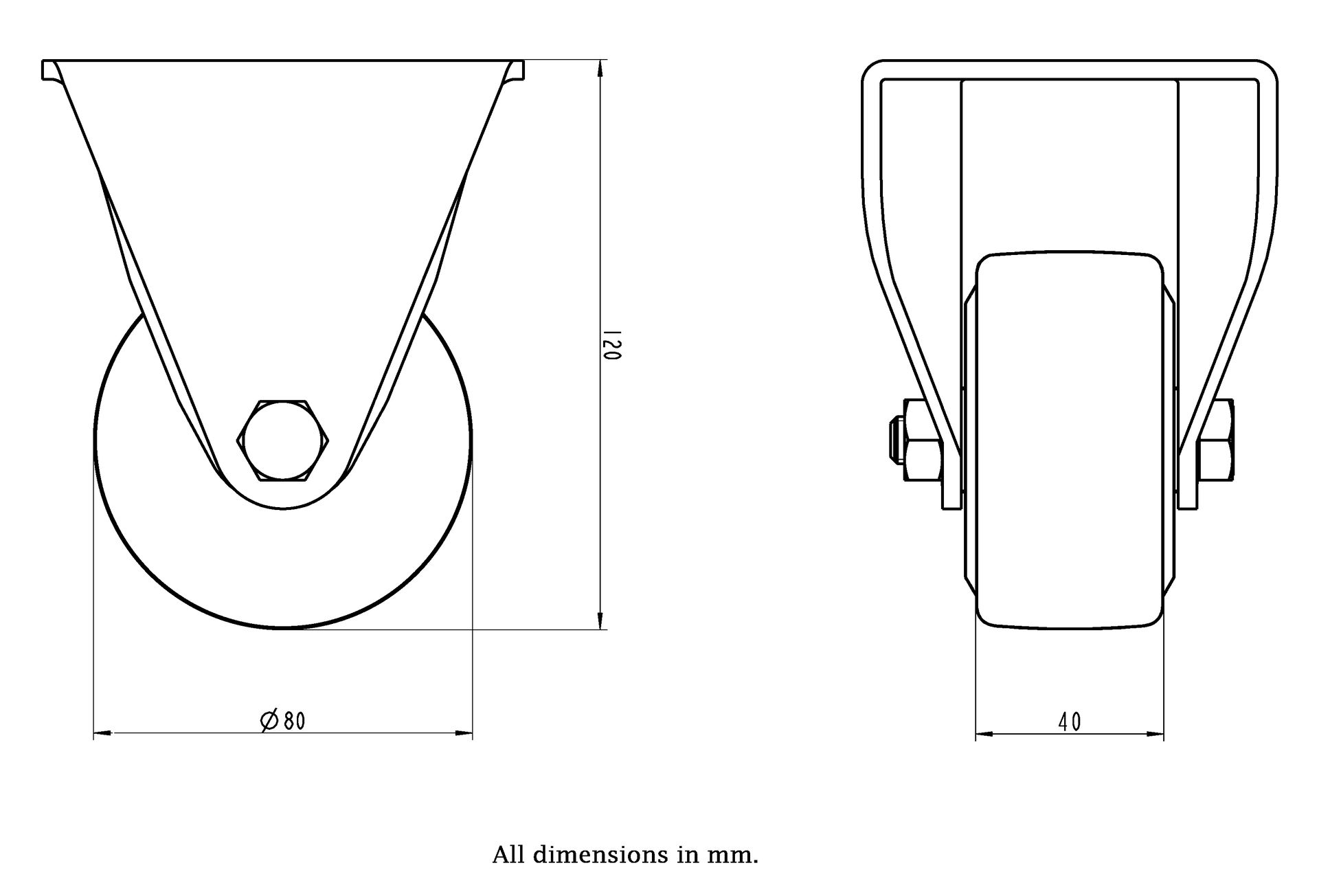 80mm fixed castor with cast nylon wheel