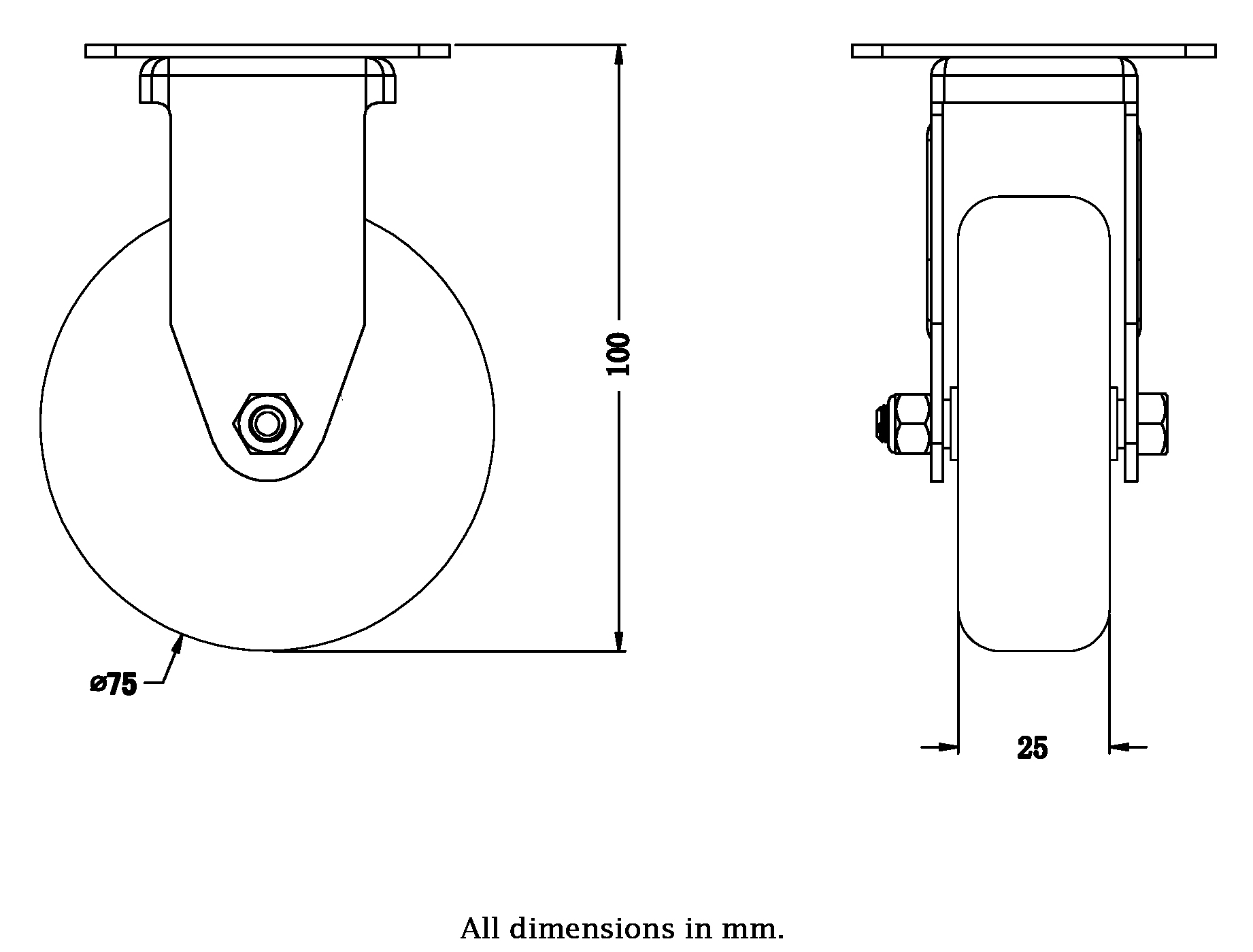75mm fixed castor with grey electrically conductive thermoplastic rubber on polypropylene centre wheel