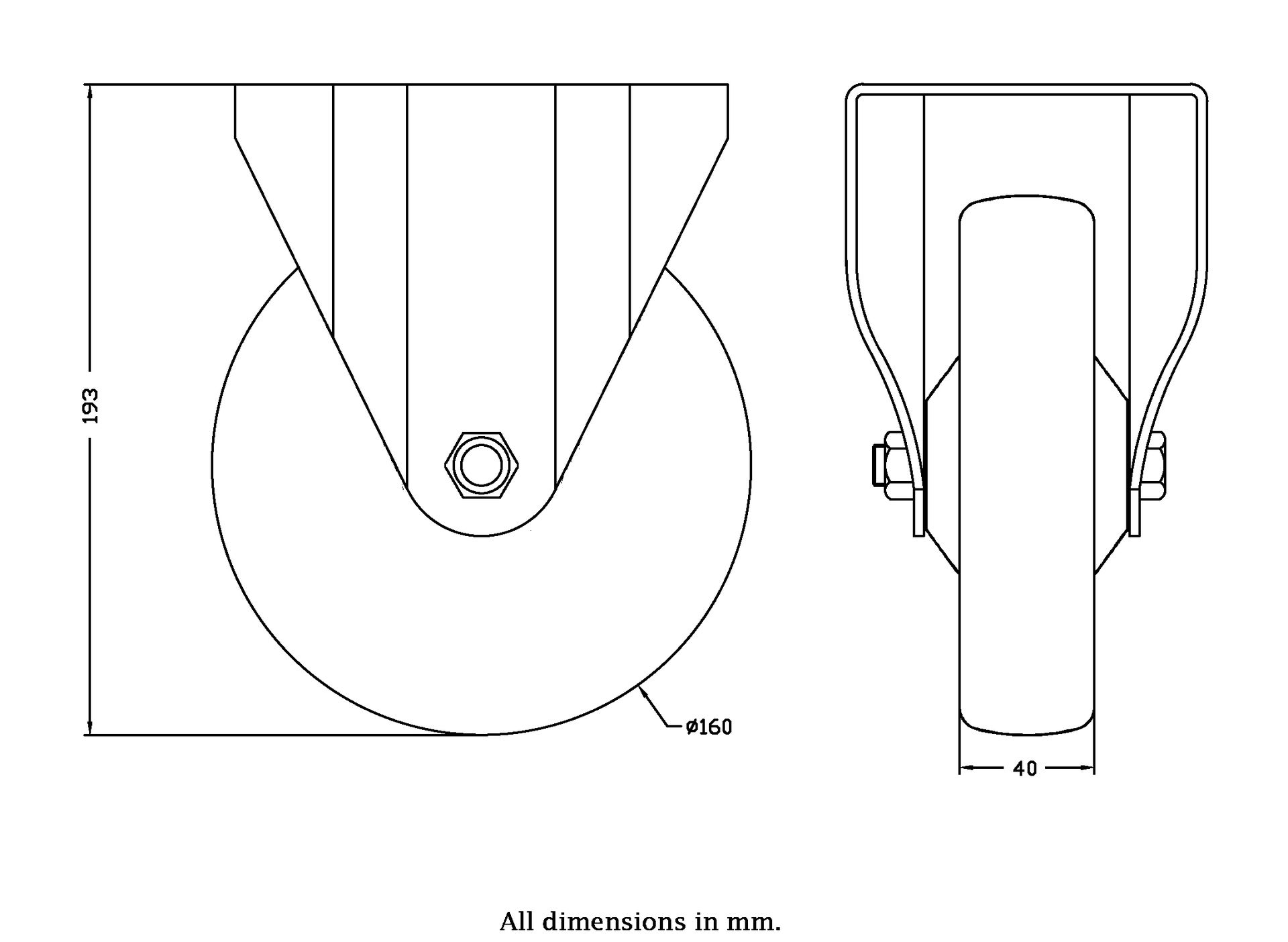 160mm fixed castor with grey electrically conductive thermoplastic polyurethane on nylon centre wheel