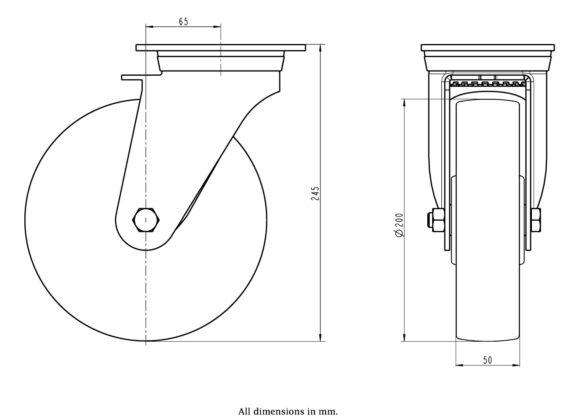 Wheel Diameter: 200mm (8" inches)
