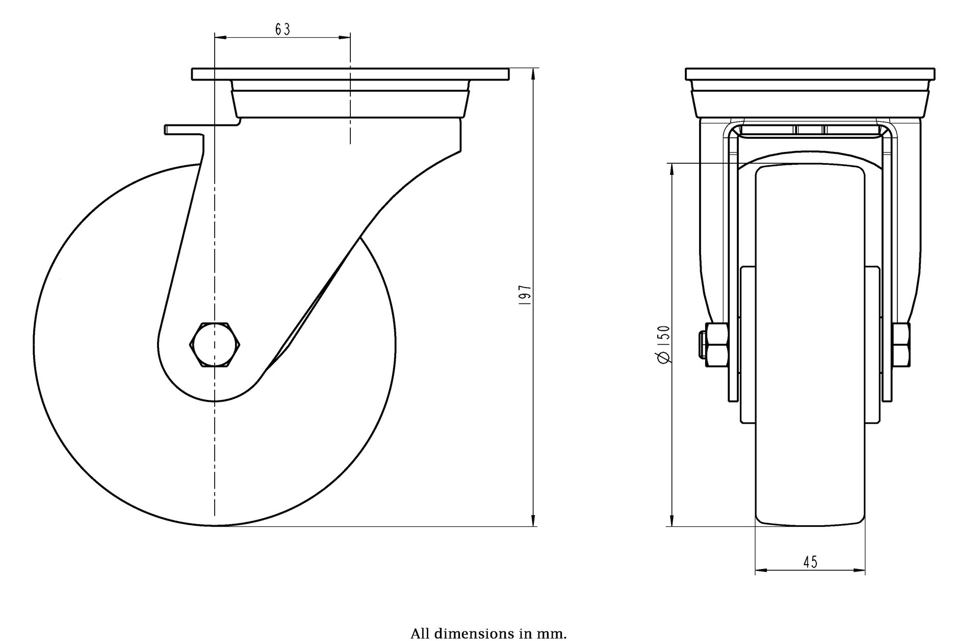 Swivel castor with strong top plate bracket made of stainless steel with double row ball race in swivel head (material no. 1.4301/AISI 304), with dust protection ring.