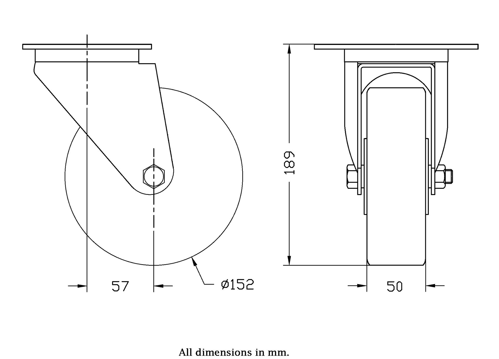 Wheel Diameter: 152mm (6" inches)
