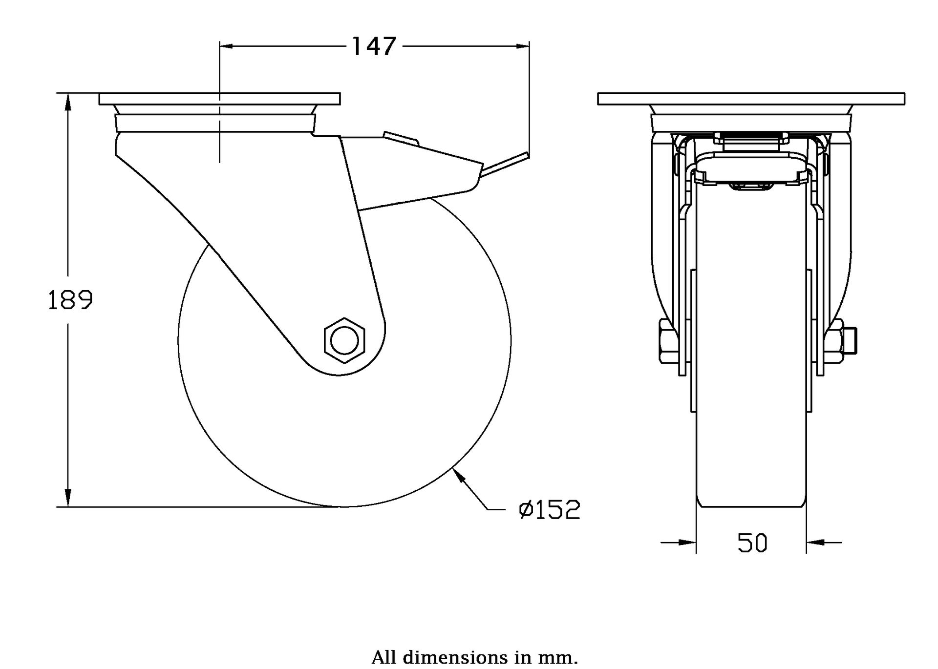 Wheel Diameter: 152mm (6" inches)