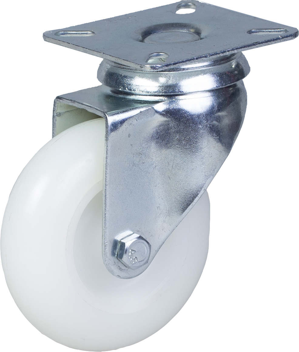 75mm swivel castor with white nylon tread on polypropylene centre wheel