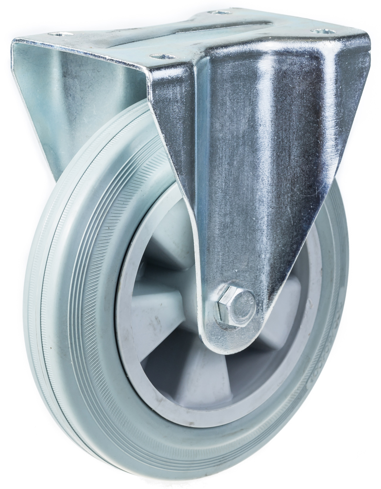200mm fixed castor with grey rubber on polypropylene centre wheel