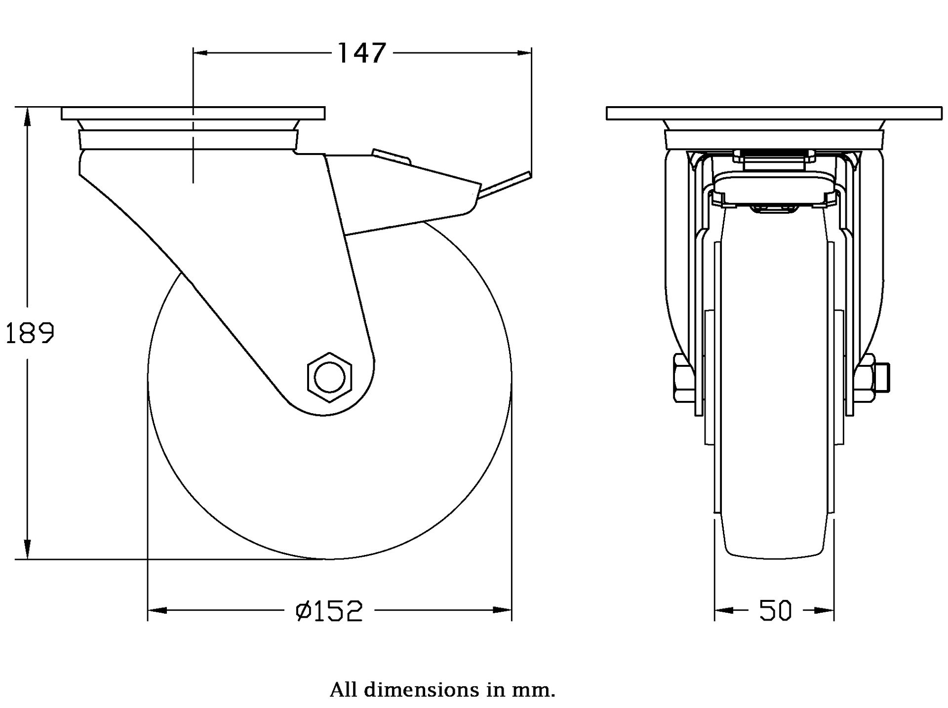 Wheel Diameter: 152mm (6" inches)
