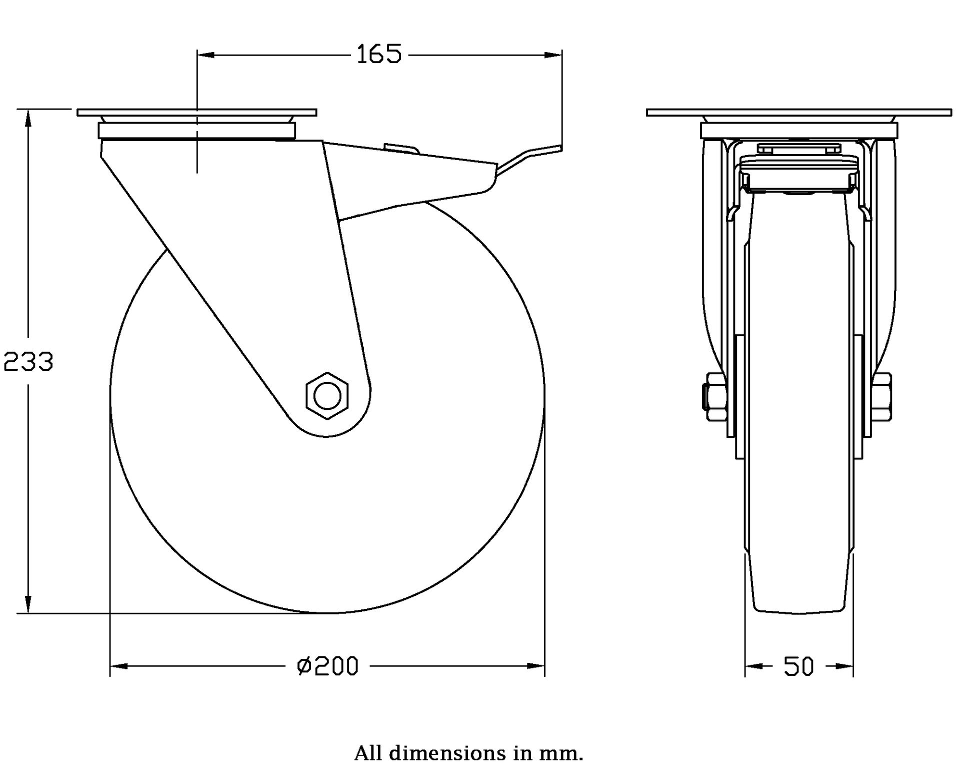 Wheel Diameter: 200mm (8" inches)