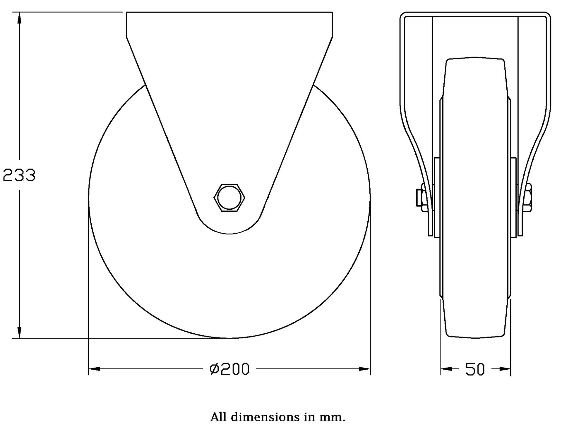 Wheel Diameter: 200mm (8" inches)