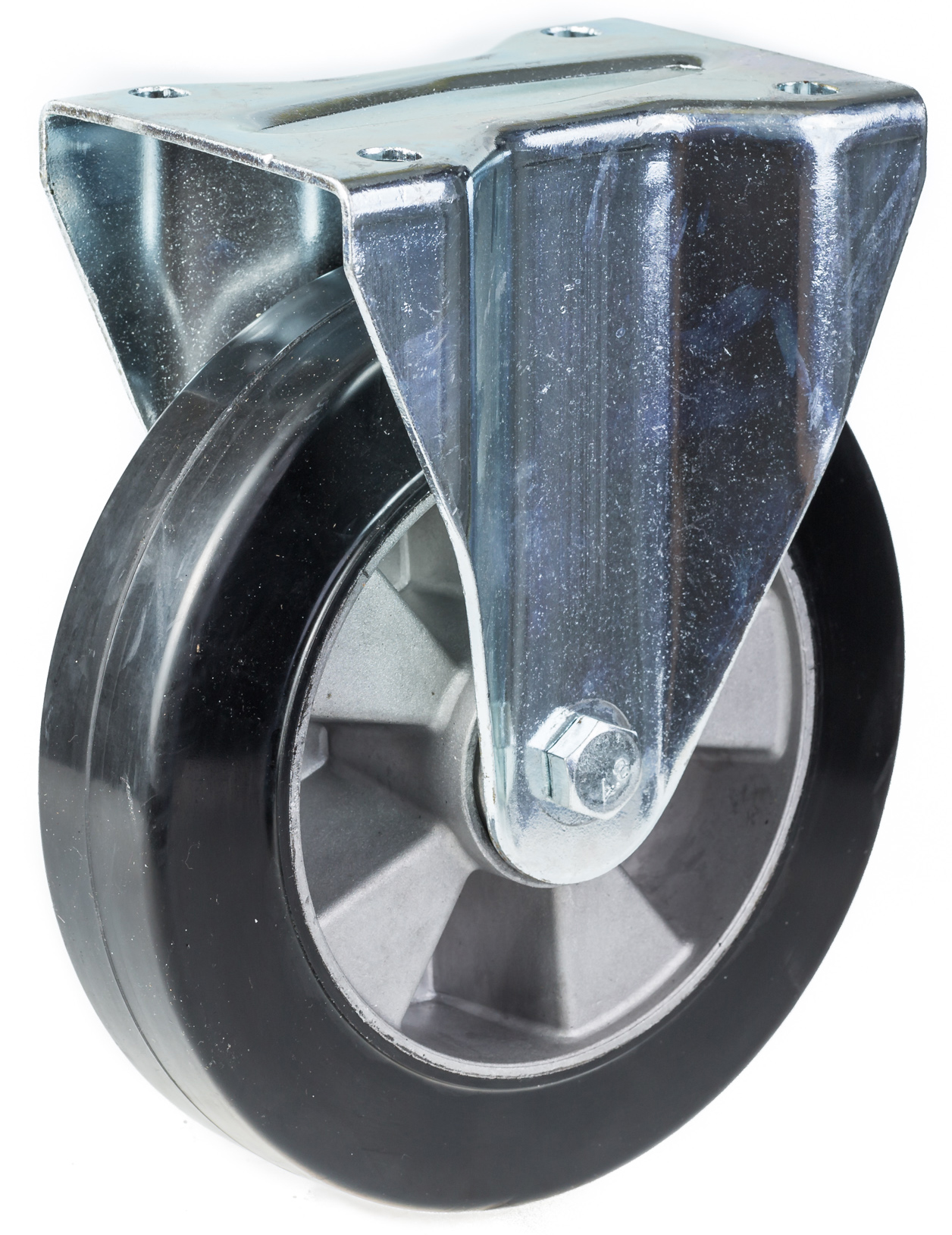 200mm fixed castor with black elastic rubber on aluminium centre wheel
