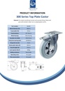 - Swivel/brake castor with top plate bracket made of zinc plated steel with double row ball race in swivel head and dust protection ring.