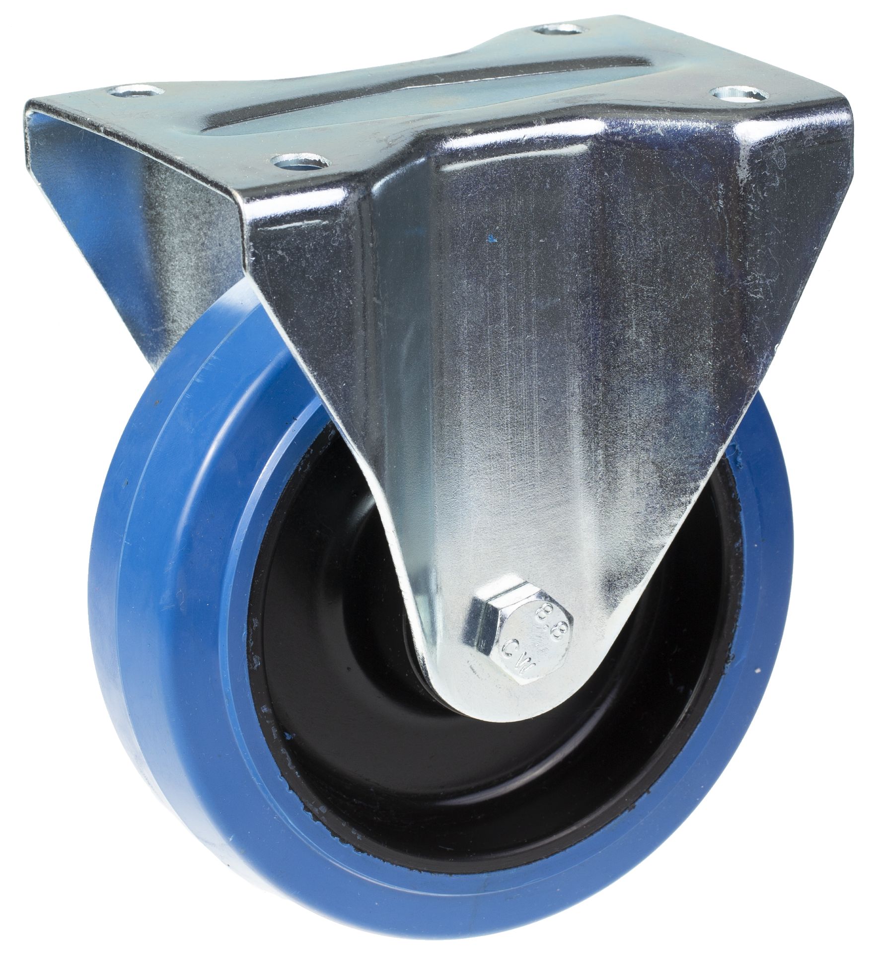 - Fixed castor with top plate bracket made of zinc plated steel.