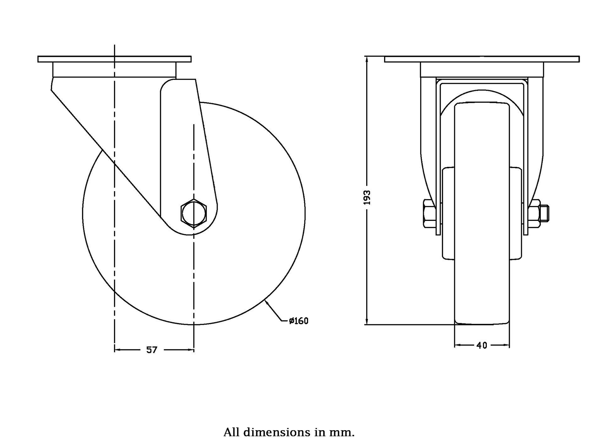 Wheel Diameter: 160mm (6" inches)