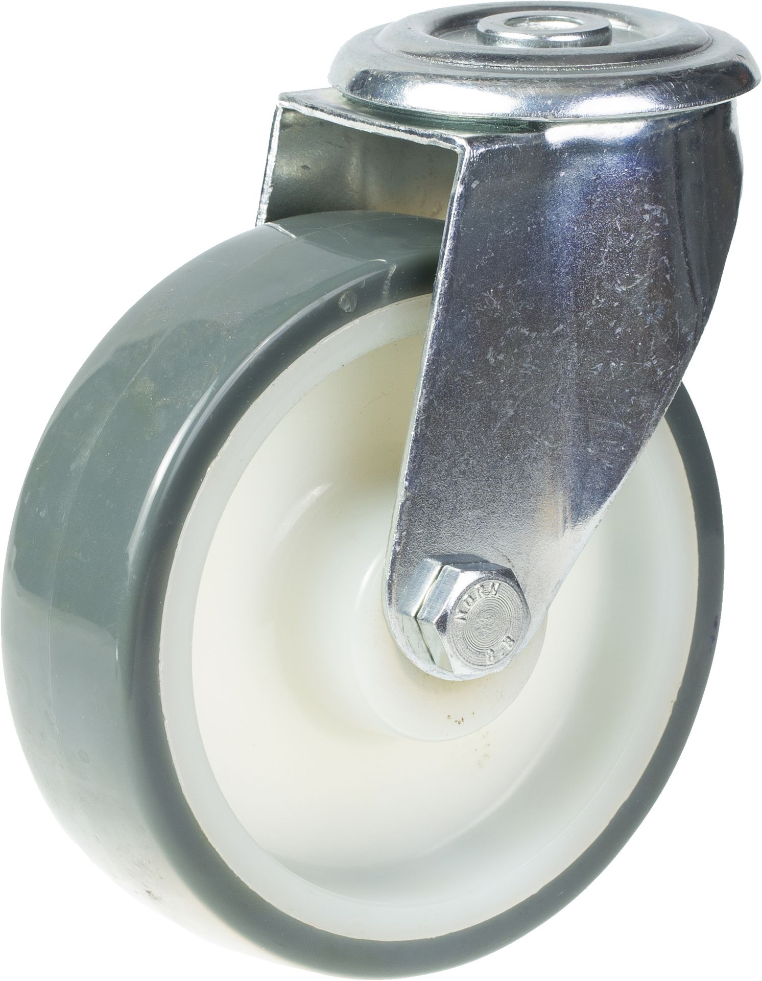 125mm swivel castor with grey thermoplastic polyurethane on nylon centre wheel