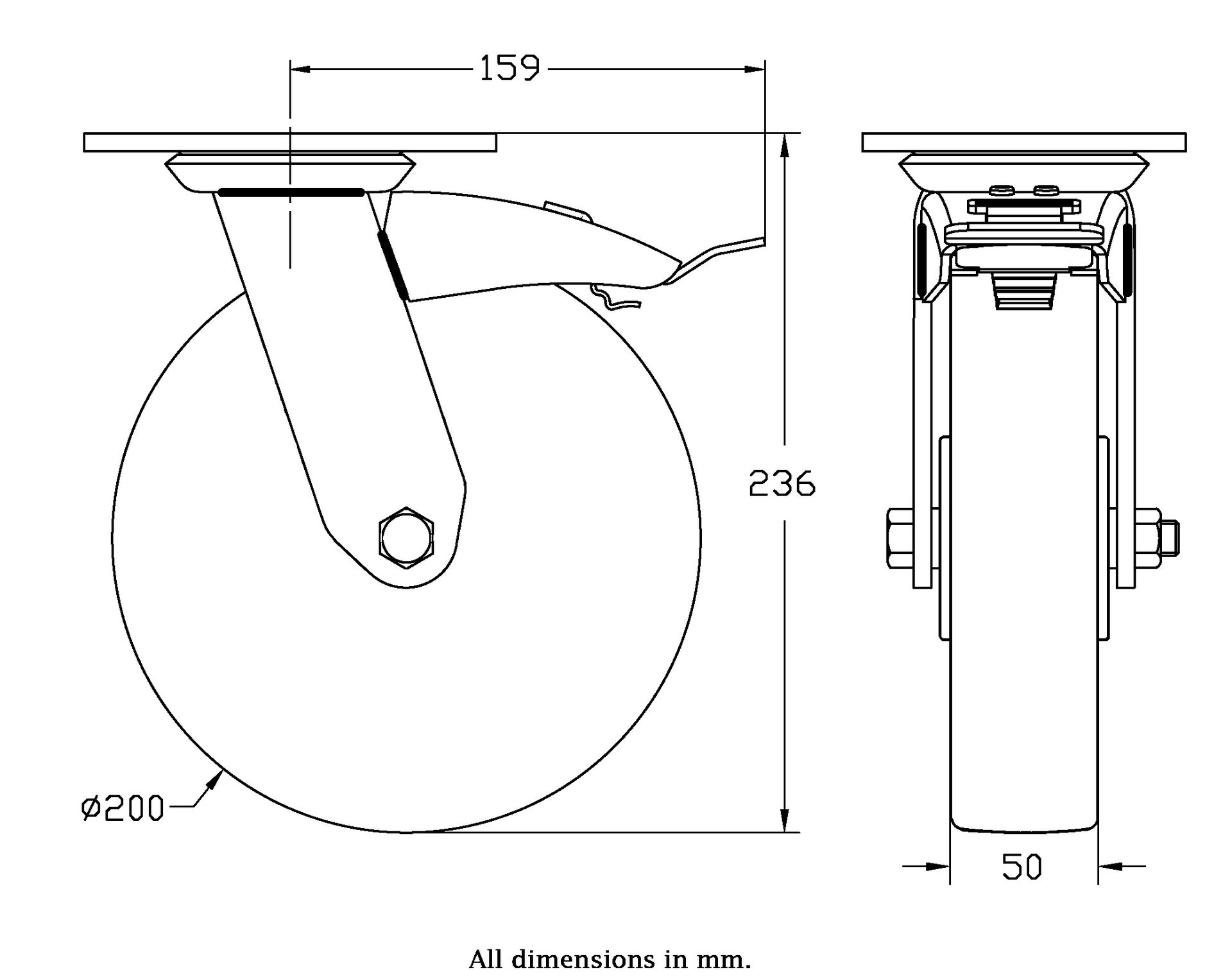 Wheel Diameter: 200mm (8" inches)