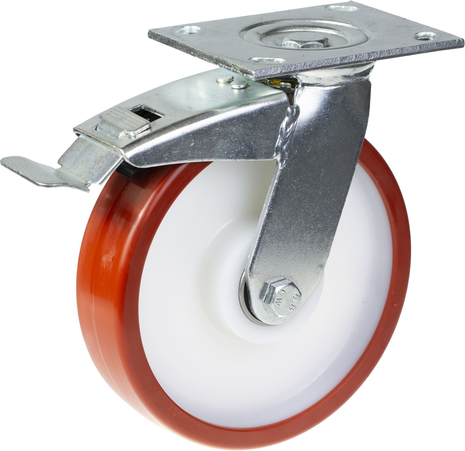 200mm swivel/brake castor with red thermoplastic polyurethane on nylon centre wheel