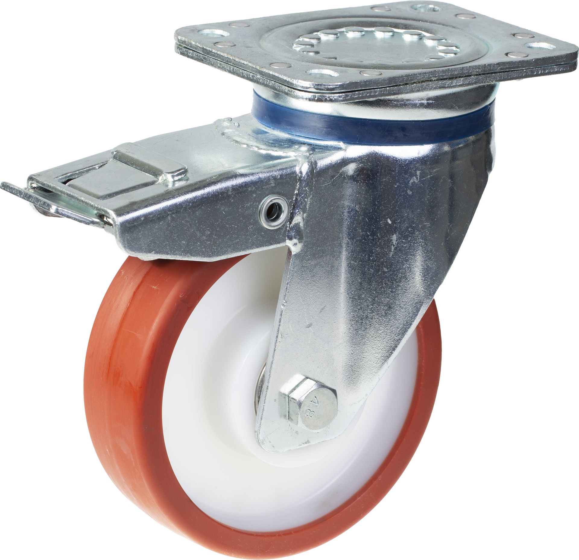 150mm swivel/brake castor with red thermoplastic polyurethane on nylon centre wheel