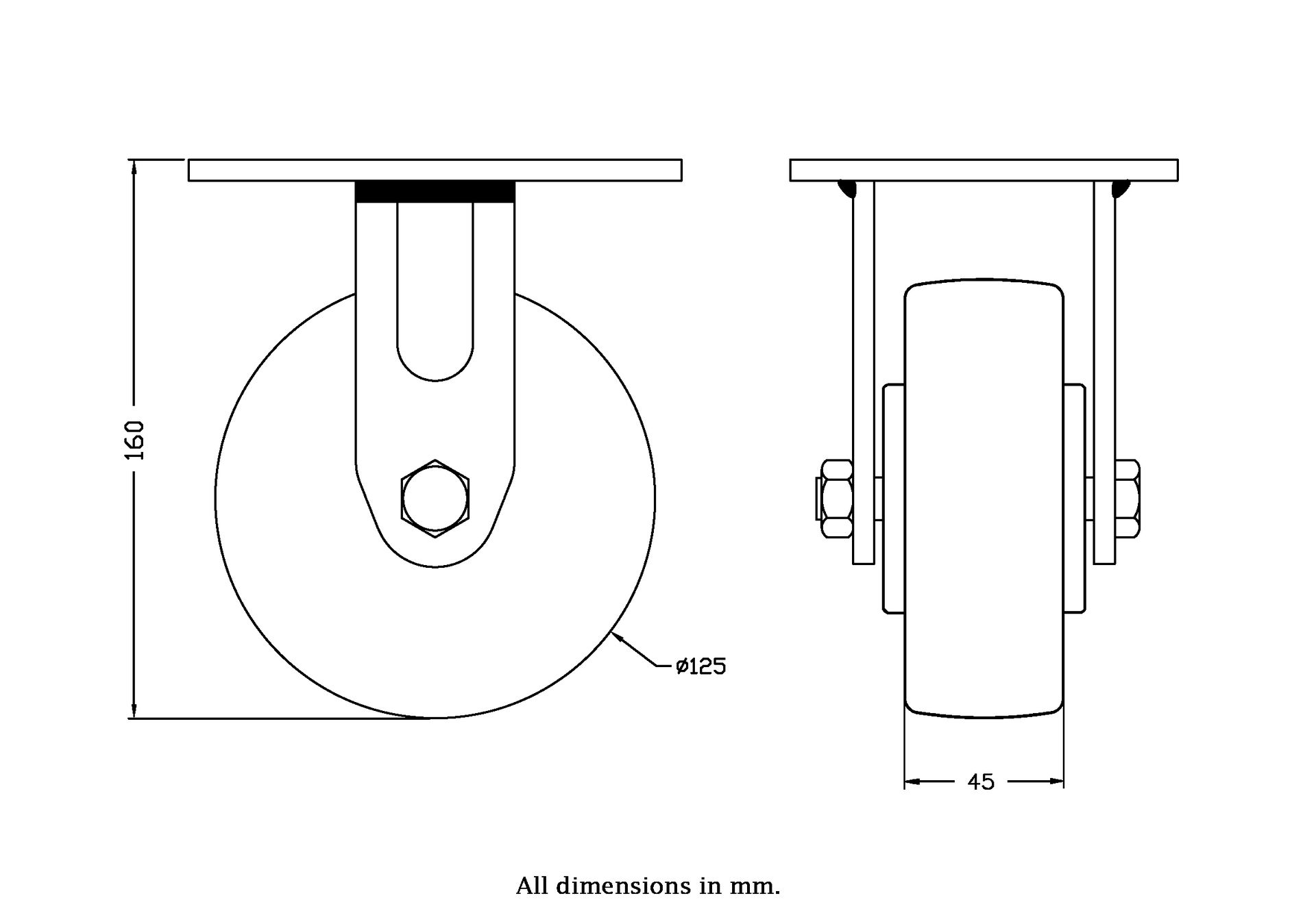 - Fixed castor with strong top plate bracket made of zinc plated steel.